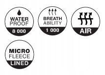 - водонепроницаемость 8000 - параметры, определяющие водонепроницаемость, приведены в миллиметрах водяного столба, от которого защищает материал