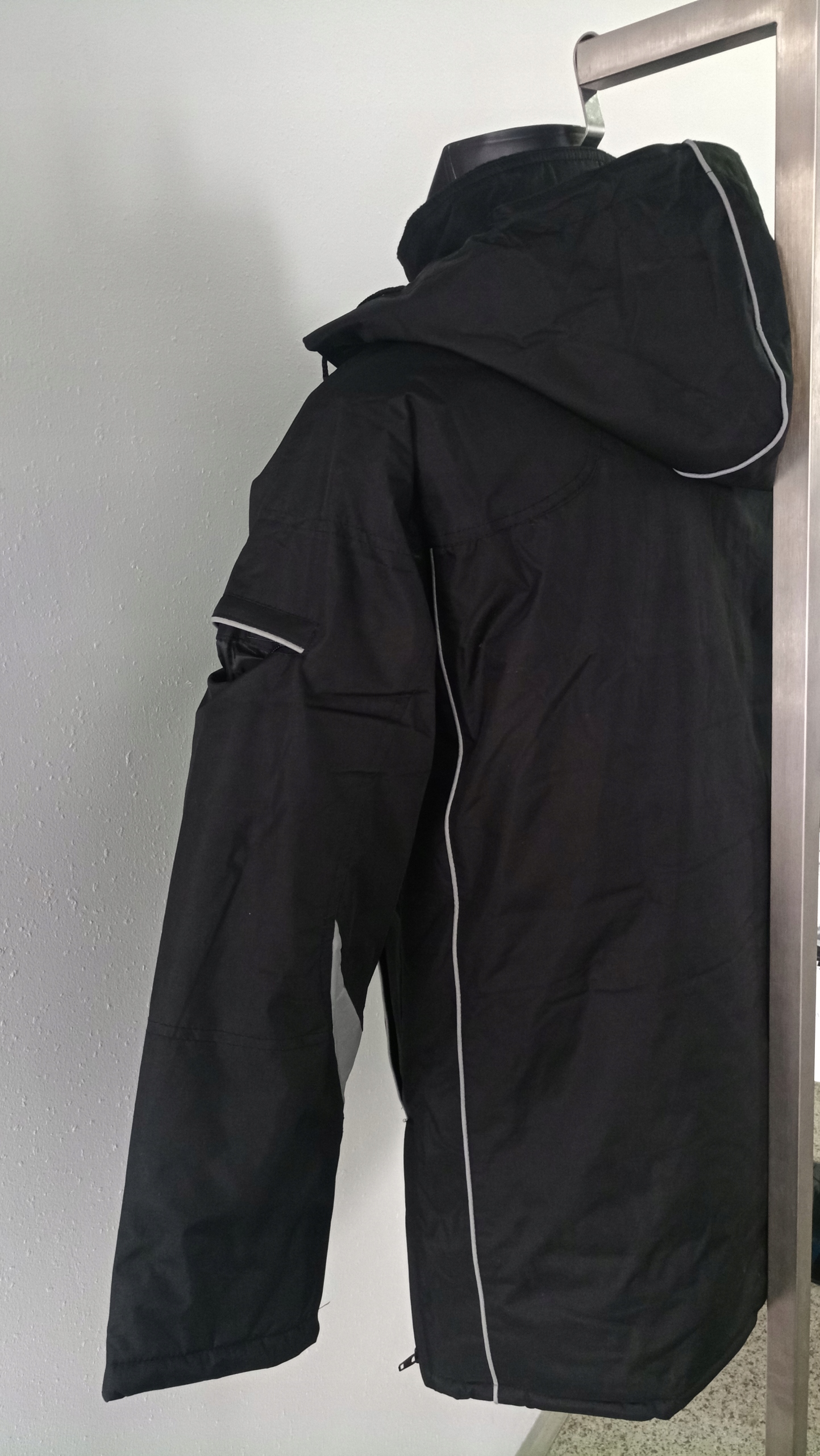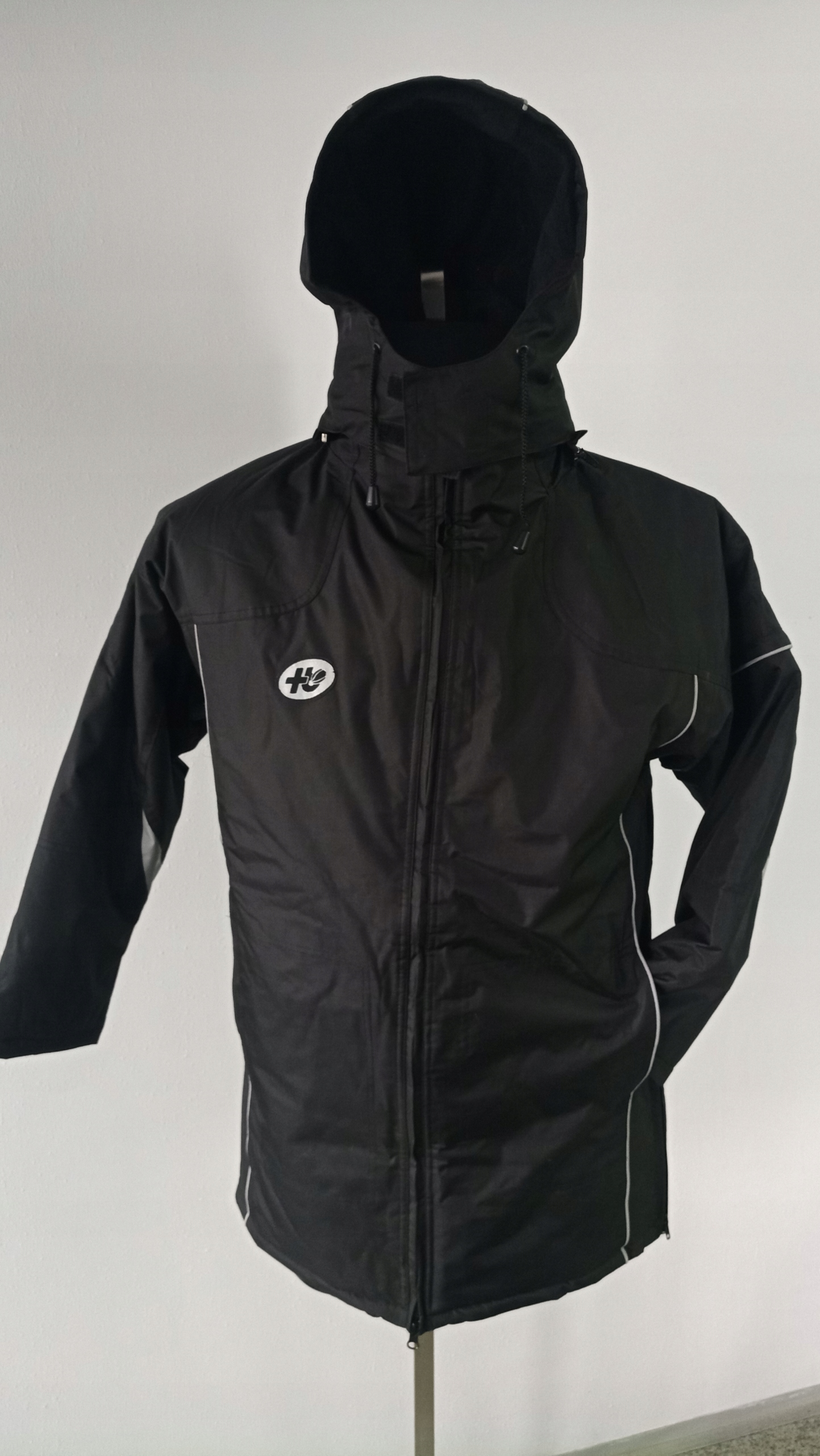 Куртка застегивается на двойную молнию. Карманы с обеих сторон (не застегиваются). По бокам боковины можно расширить за счет дополнительных молний. На левом рукаве имеется дополнительный карман на молнии, например, для телефона. Внутри куртки имеется небольшой карман на липучке и специальная бирка с данными игрока/человека. Капюшон на флисовой подкладке. Капюшон застегивается на молнию. На капюшоне имеется кулиска и застежки-липучки для плотного крепления.