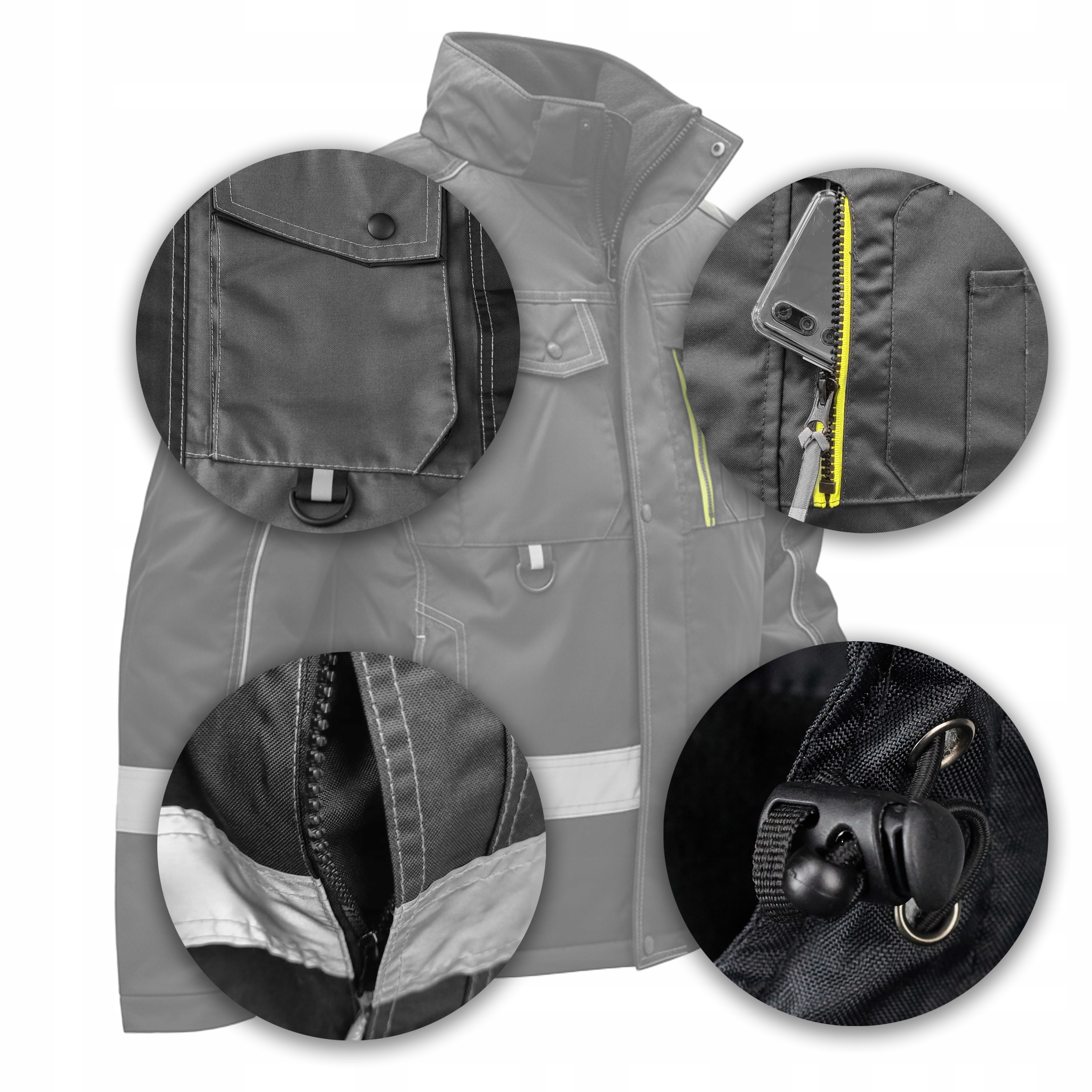 КУРТКА ЗИМНЯЯ РАБОЧАЯ МУЖСКАЯ С КАПЮШОНОМ, ВОДОНЕПРОНИЦАЕМЫЙ ОКСФОРД, СВЕТООТРАЖАЮЩАЯ СТЕПЕНЬ