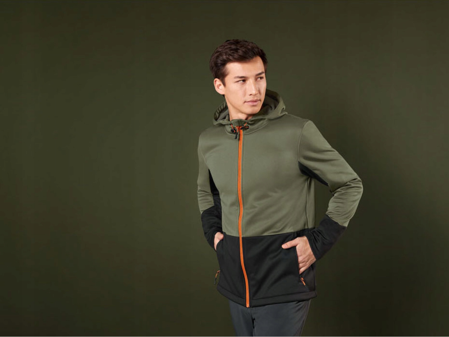 - из ветрозащитного трехслойного материала Softshell с высокой теплоемкостью.