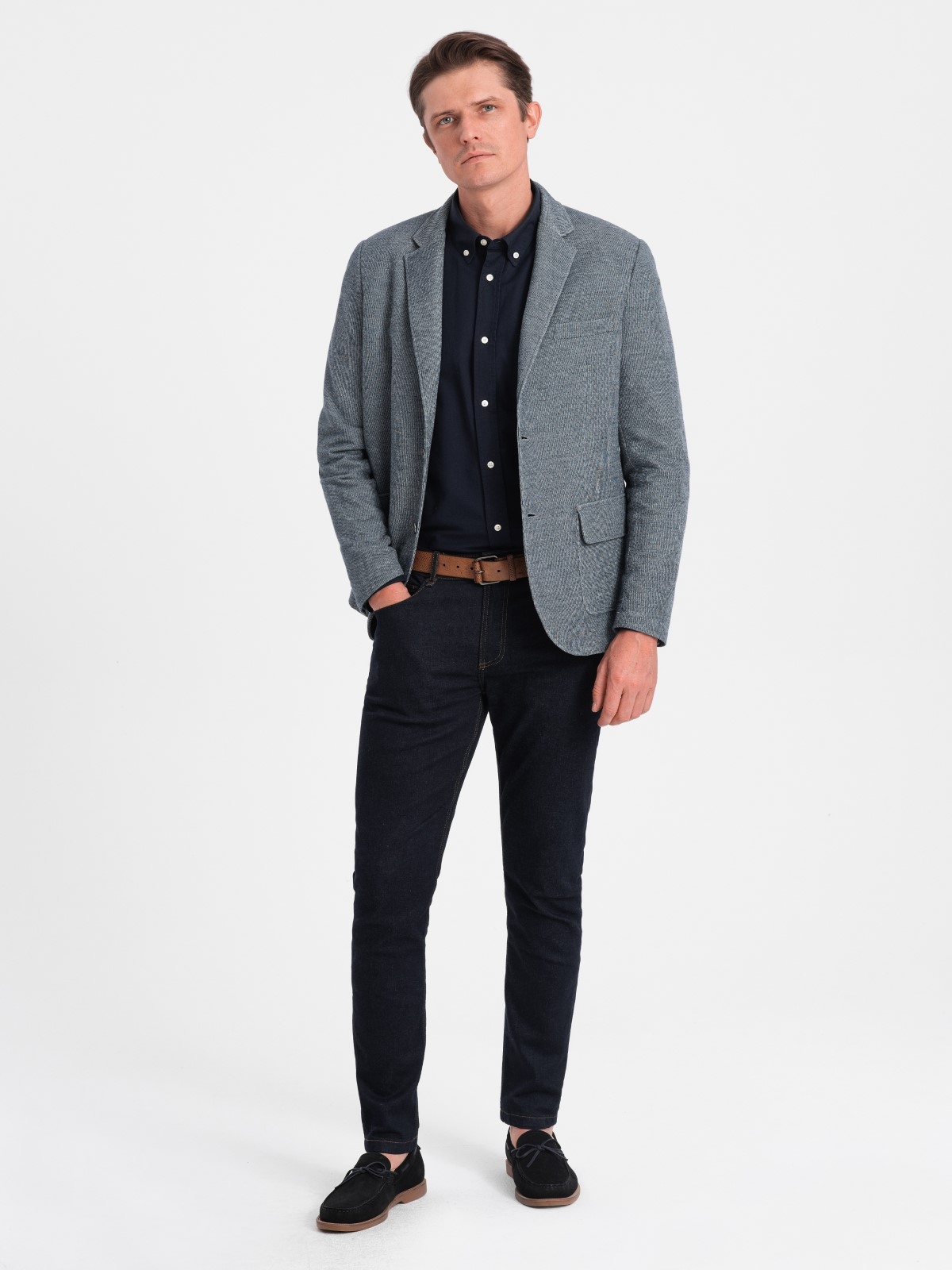 Чоловіча куртка з латками на ліктях темно-синя V2 OM-BLZB-0108 XXL