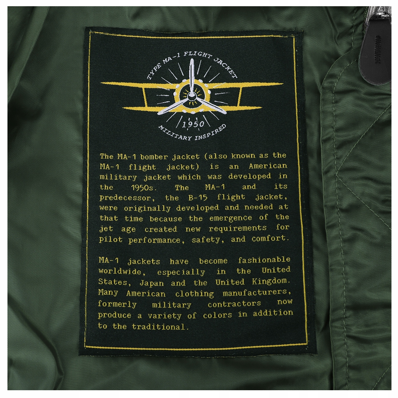- Создан по образцу легендарной куртки MA1 ВВС США.
