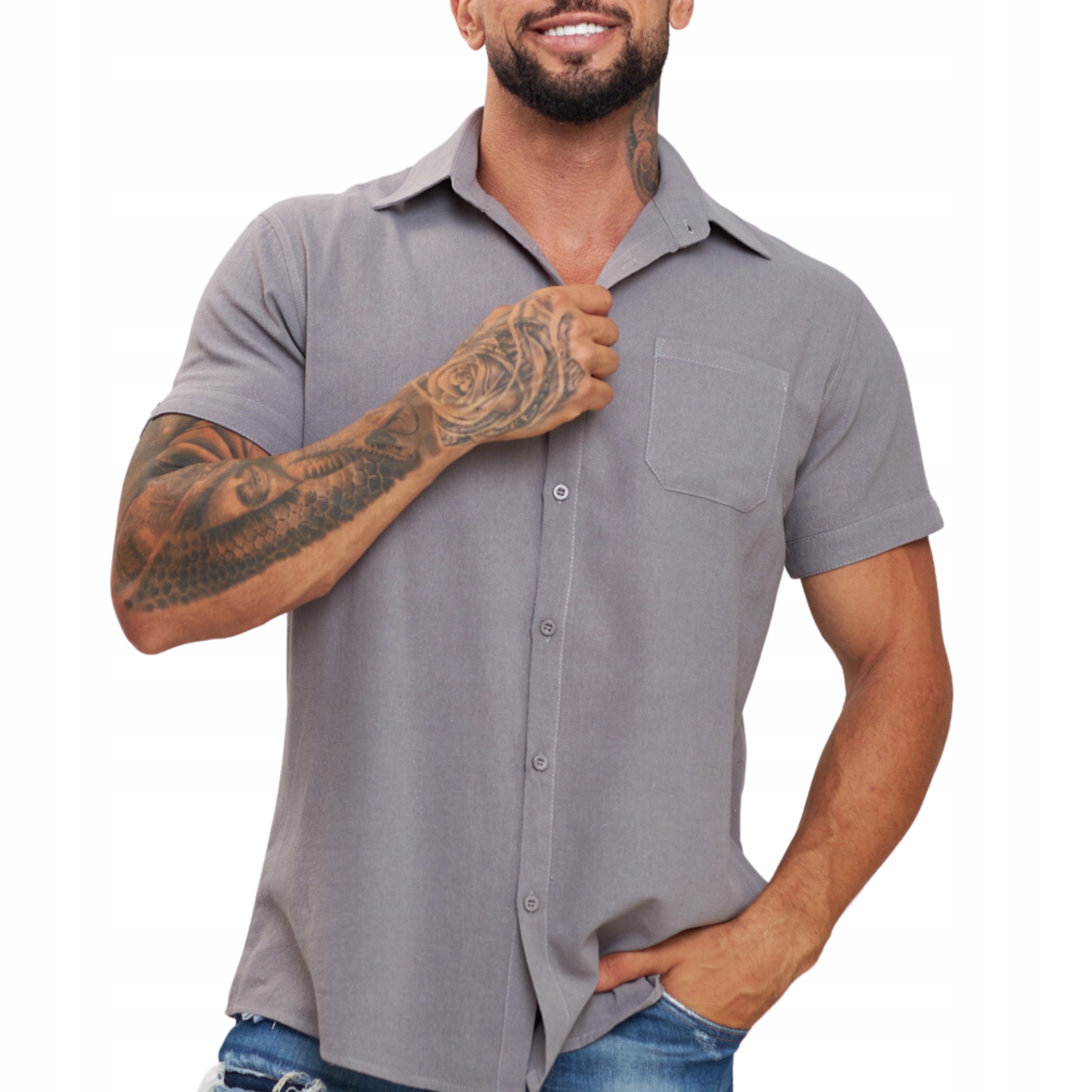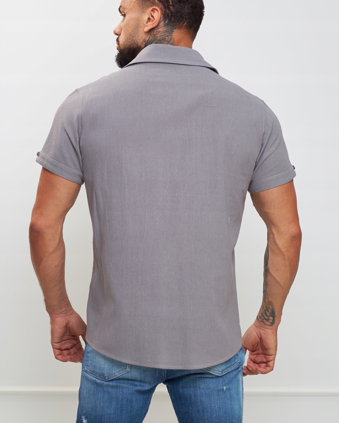Чоловіча літня сорочка з льону з коротким рукавом і бавовняним коміром