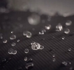 Маленькие капли воды объединяются в более крупные и затем стекают по материалу. Этот эффект виден на фото выше.