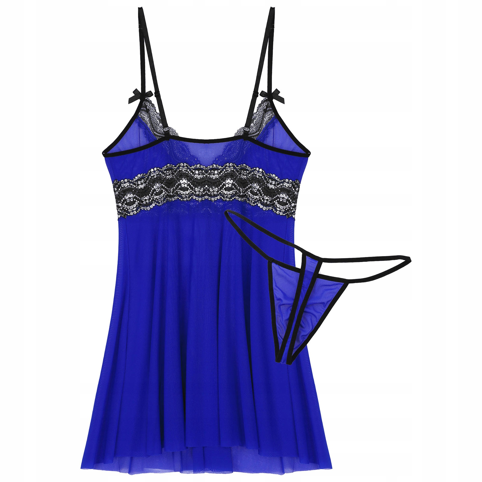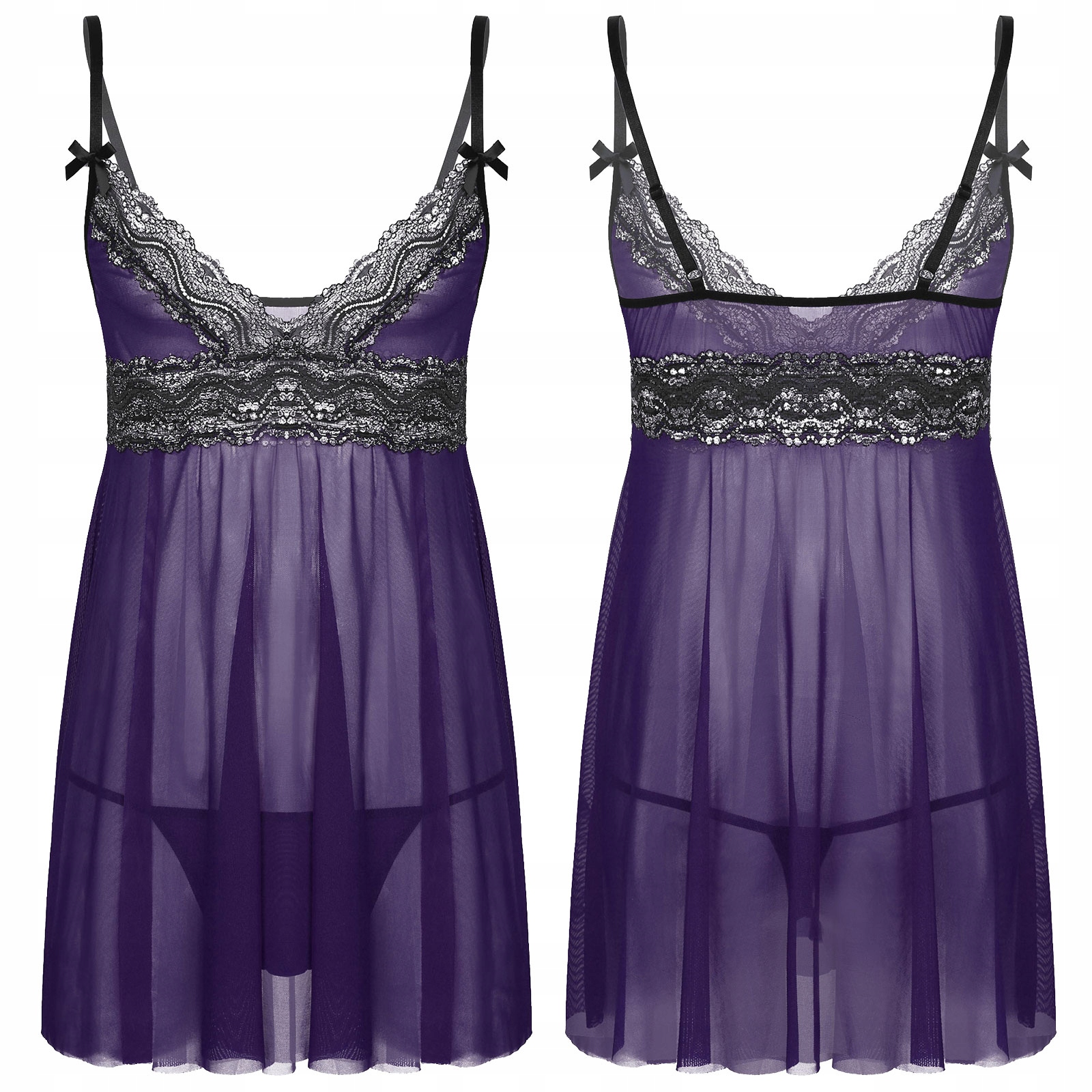 Мужское кружевное белье, прозрачное платье + стринги, черное М