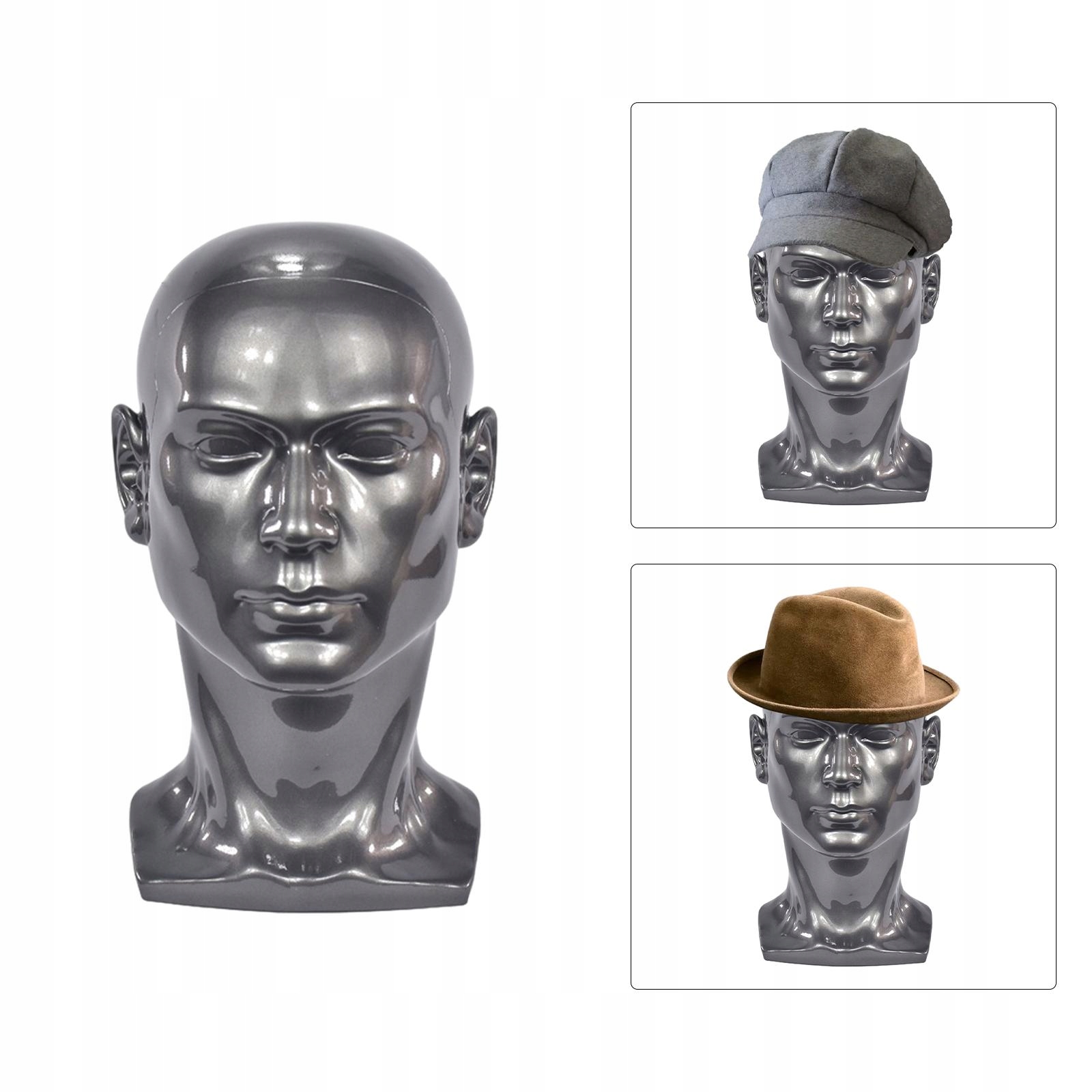 Модель головы мужского манекена, окружность 57см. Украшения для наушников. Серебристо-серый.