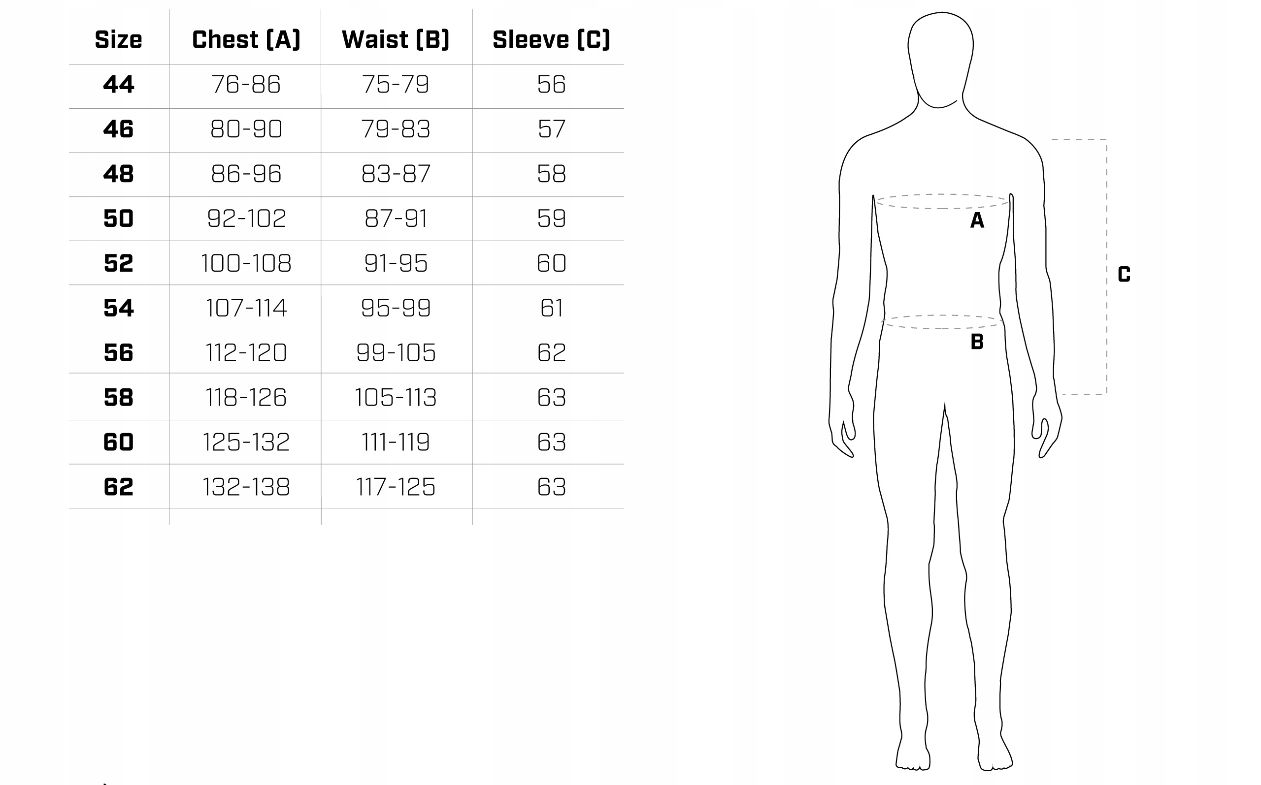 - Чтобы правильно отрегулировать куртку , вы должны предложить данную таблицу