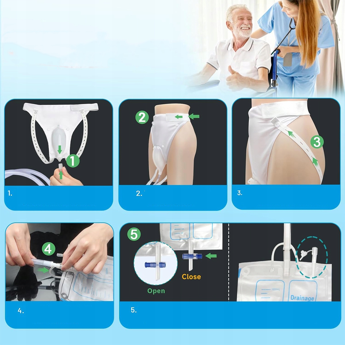 - Набор включает в себя трусики, писсуары, уретра и две сумки с емкостью 1000 мл.
