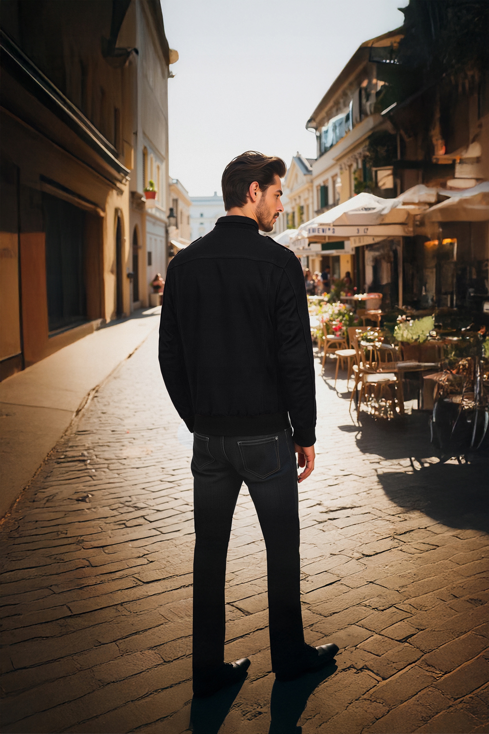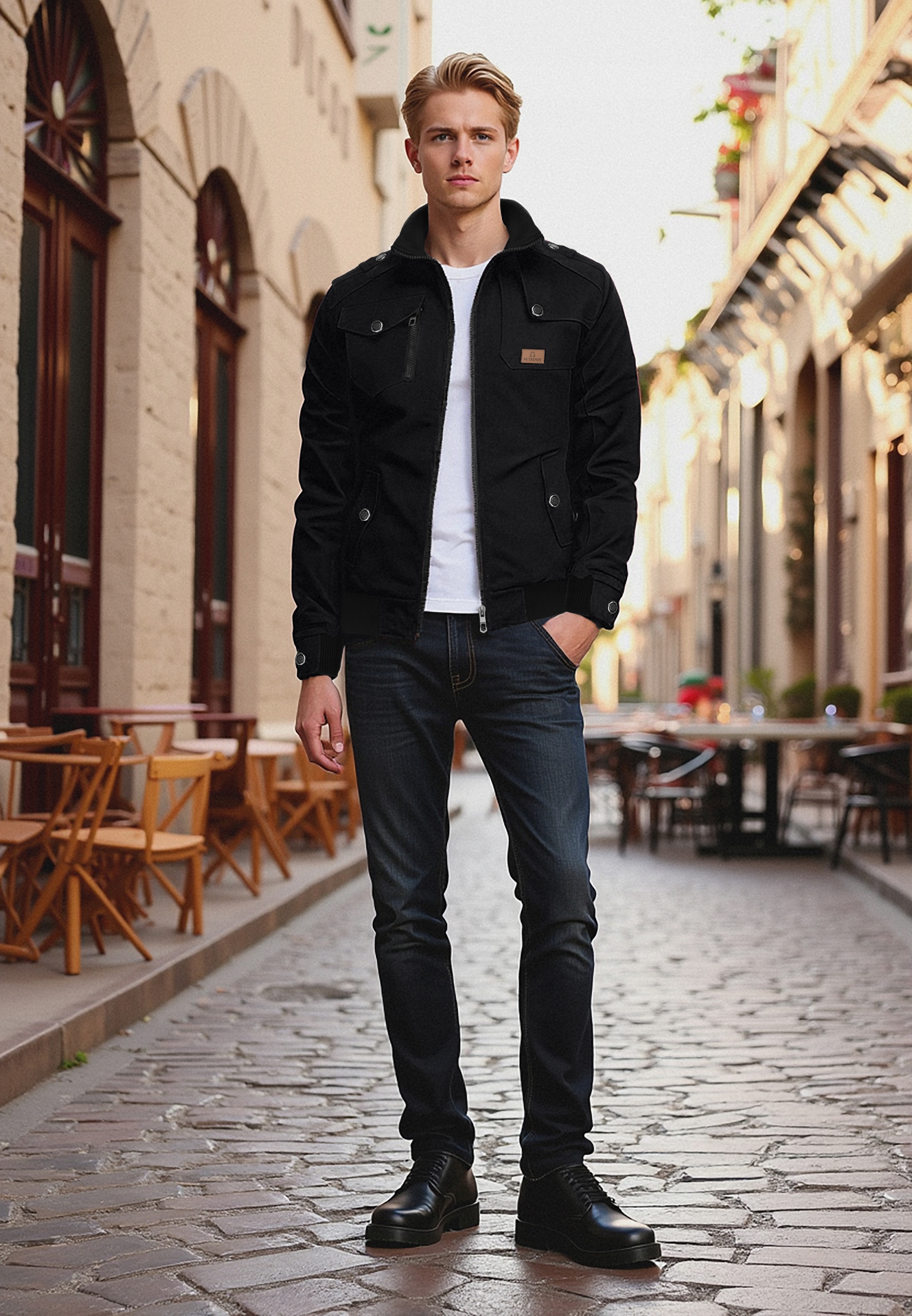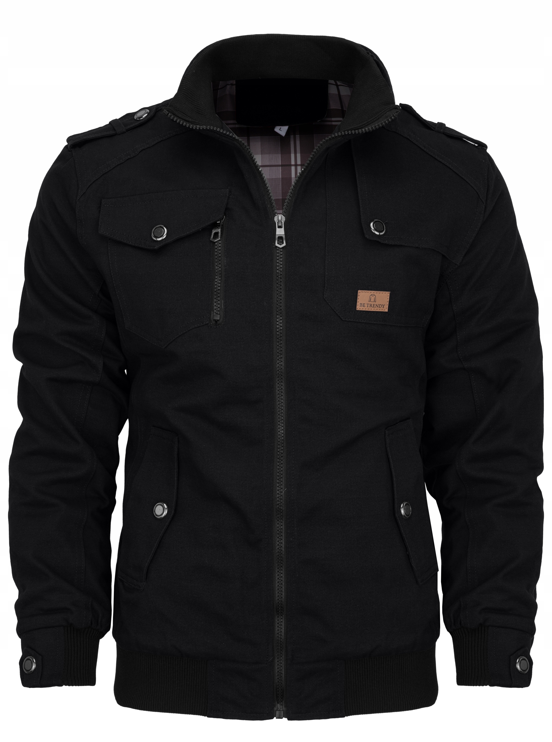 МУЖСКАЯ ПЕРЕХОДНАЯ ХЛОПКОВАЯ КУРТКА ПИЛОТ ВЕСНА-ОСЕНЬ ЧЕРНАЯ 014 - XXL