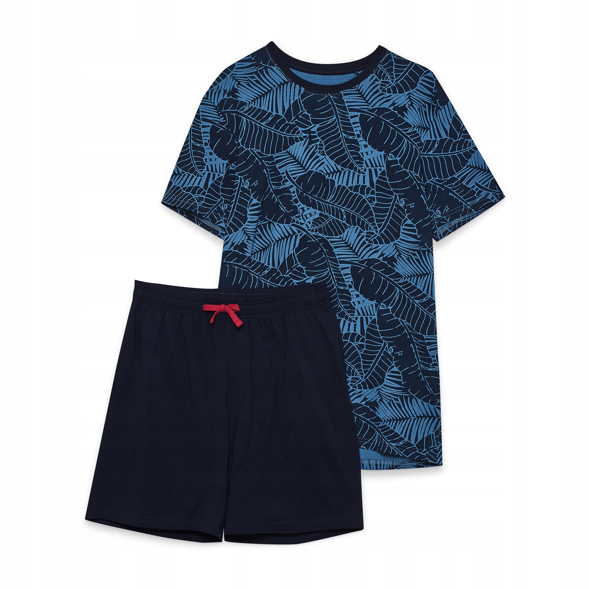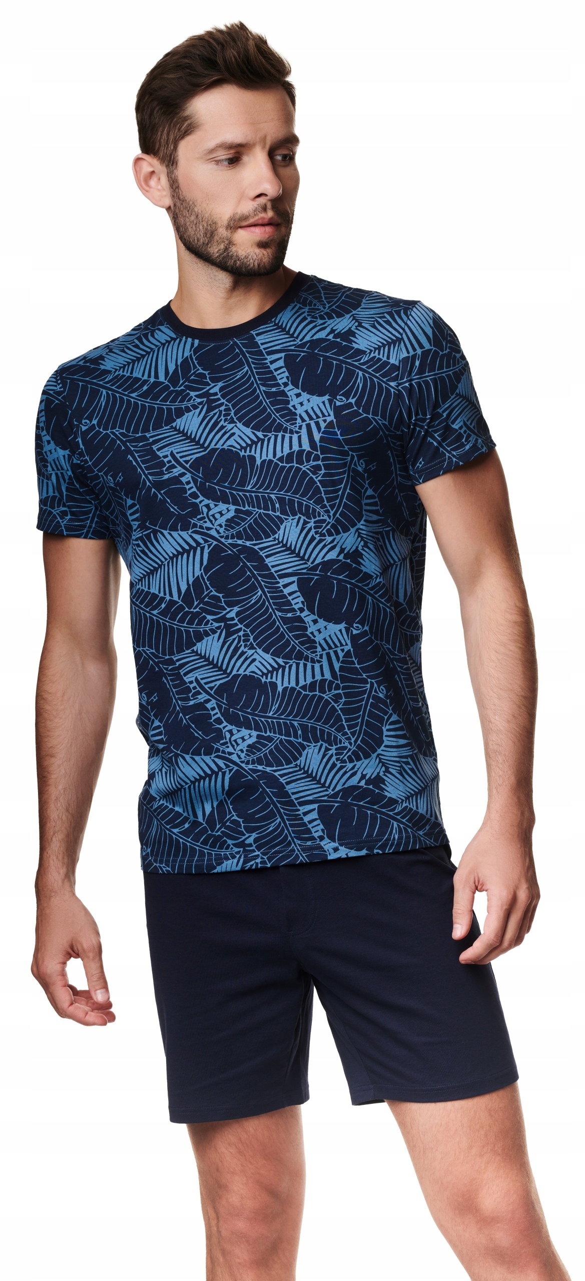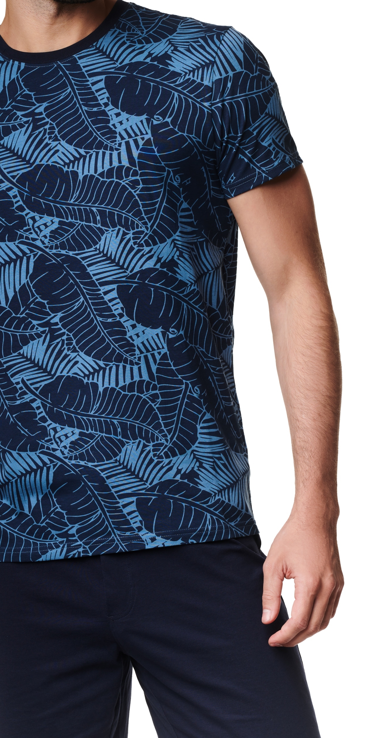 Henderson Arcade — мужская пижама из высококачественного 100% хлопка, что гарантирует качество и свободу использования, а также комфорт во время сна. Используемый хлопок представляет собой мягкую и эластичную ткань, обеспечивающую комфорт даже при длительном использовании, не сковывающую движения и не сдавливающую тело. Комплект состоит из синей футболки с принтом в виде листьев и темно-синих шорт с кулиской на талии.Пижамы Henderson – гарантия качества и комфорта.
