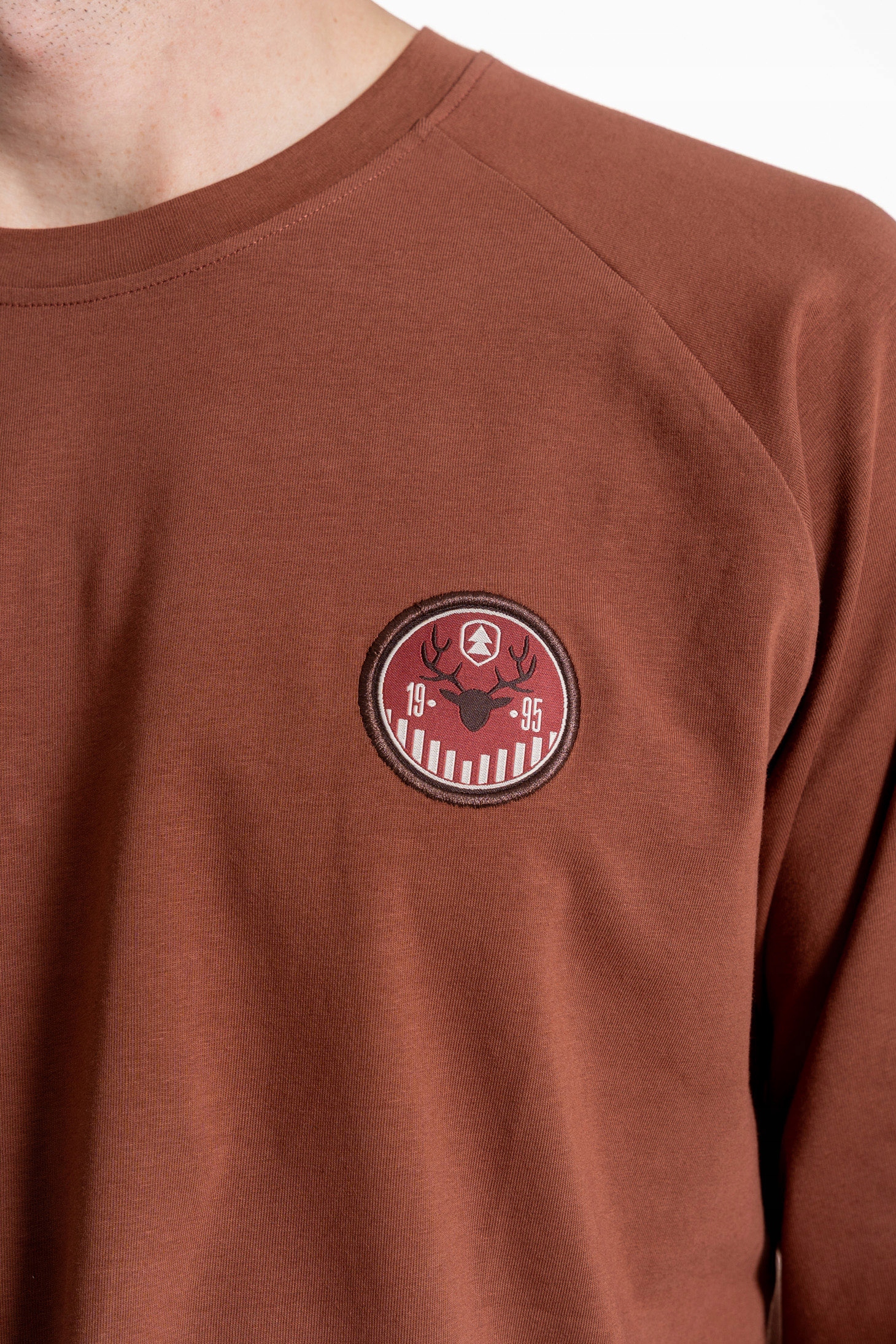 - Верх (футболка): Длинный рукав и круглый вырез приглушенного коричневого цвета цвет.