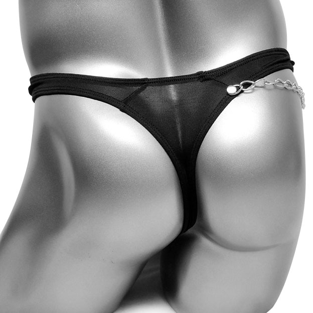 Мужская стринга искусственная кожа с трусиками поводка