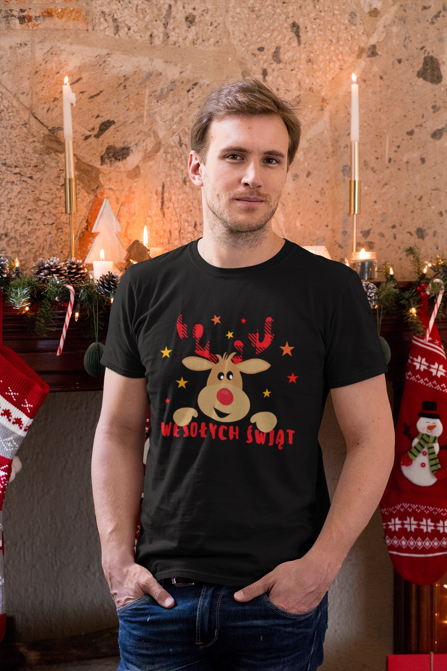 ЧОЛОВІЧА РІЗДВЯНА ФУТБОЛКА MERRY CHRISTMAS SANT CLAUS REINDEER PREMIUM