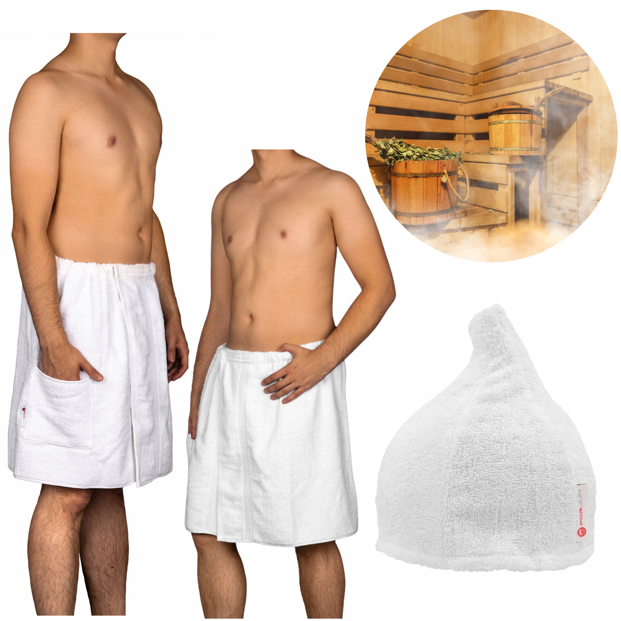 Sauna Set Men Men Coperta Frotta Lingua White Porjun