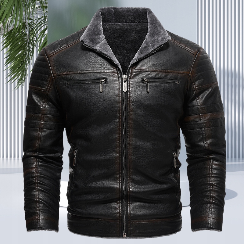 кожаная куртка с воротником -подставкой, изолированной очень теплой и удобной