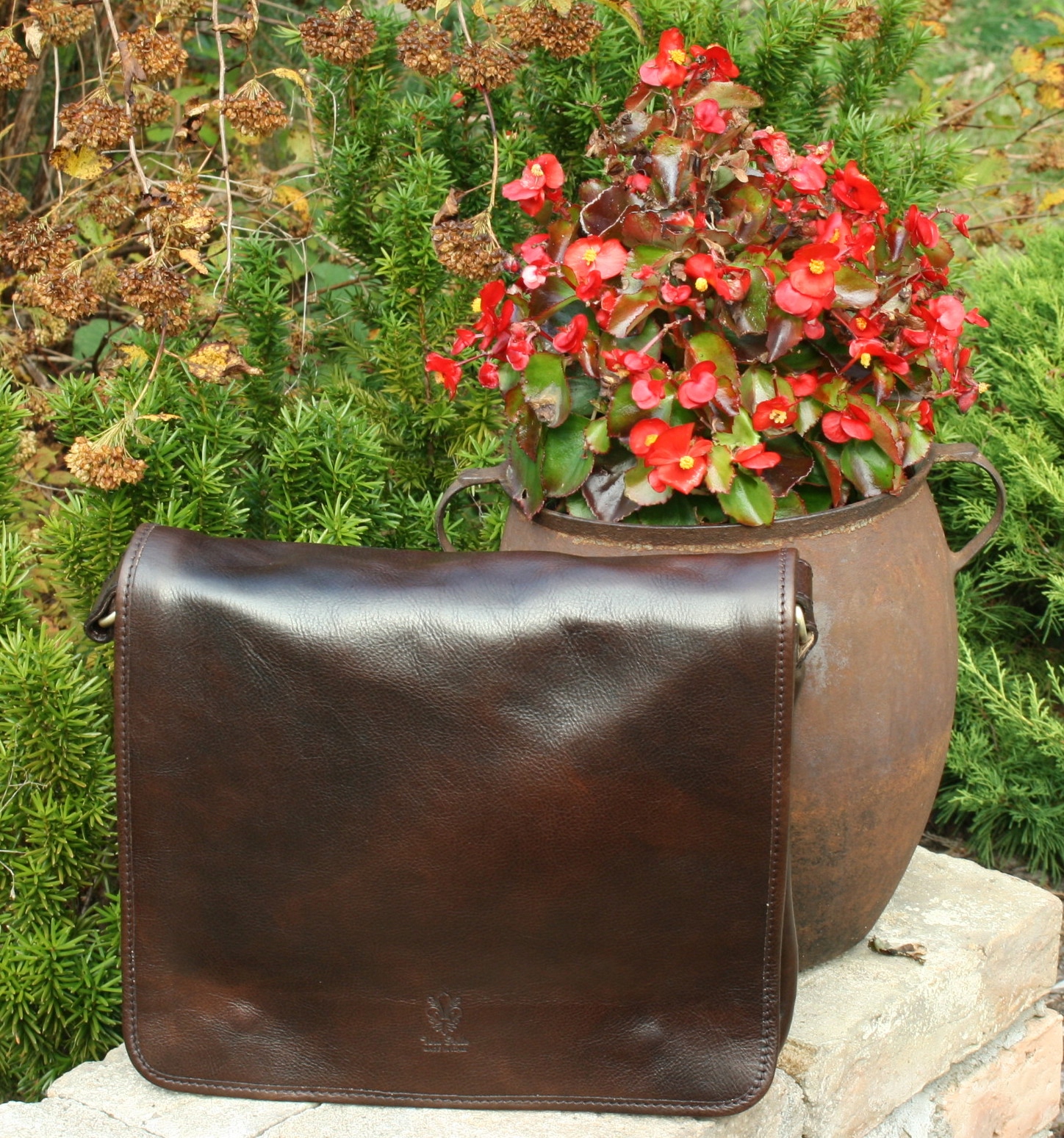 Кожаная сумка через плечо, большая, коричневая, итальянская, А4
