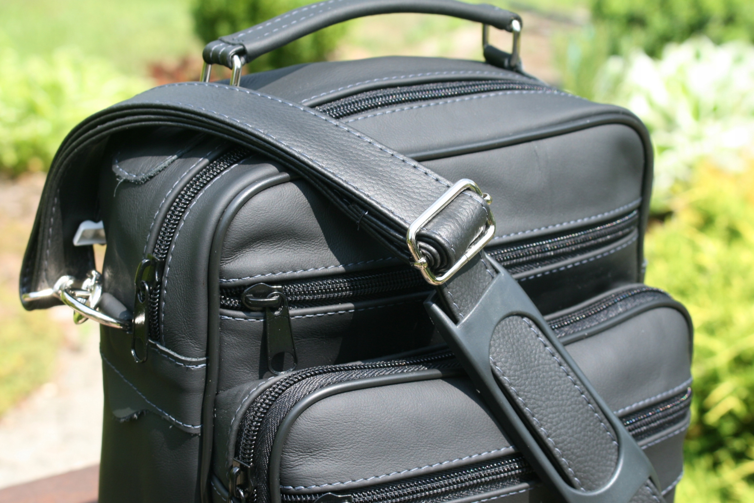 Чоловіча шкіряна сумка через плече чорного кольору з ручкою, поштова сумка польського виробництва