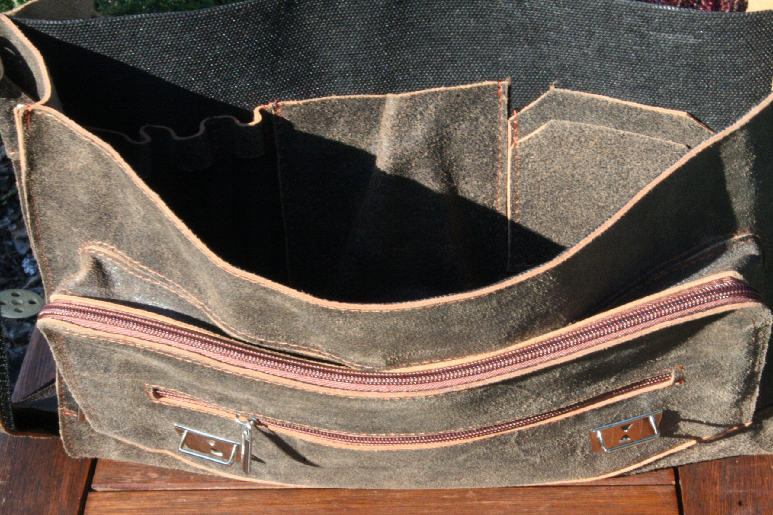 Мужской кожаный портфель через плечо вмещает формат А4.