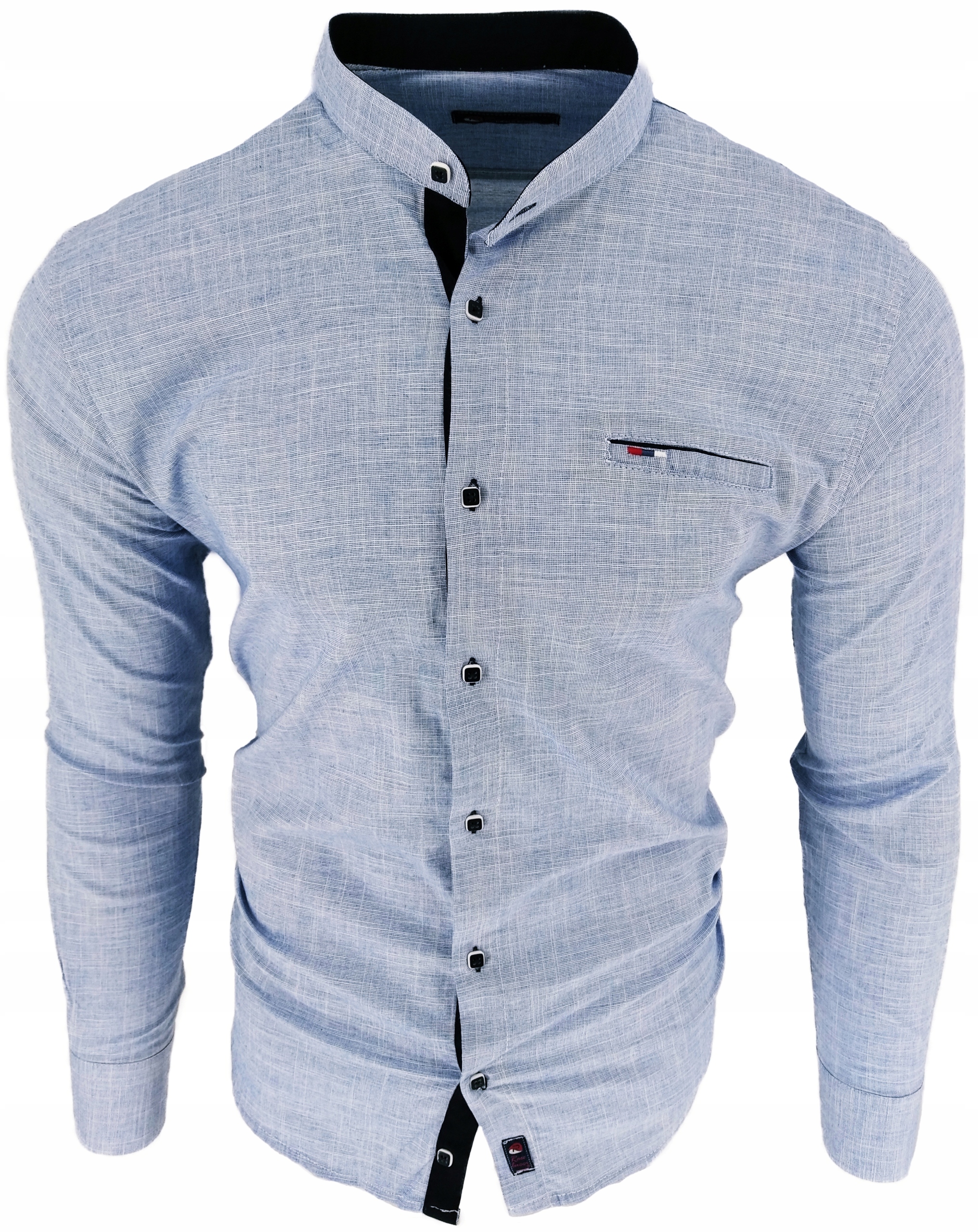 Голубая рубашка с воротником стойкой