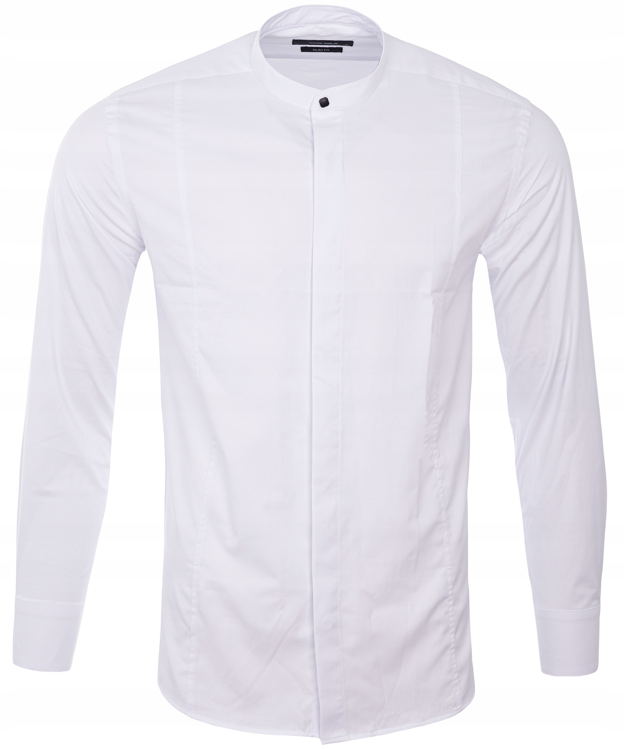 ЧОЛОВІЧА СОРОЧКА З КОМІЕРОМ-СТІЙКОЮ, бавовна, БІЛА, ВУЗЬКИЙ КОМІР-СТІЙКА, ГУДЗИКИ, XL