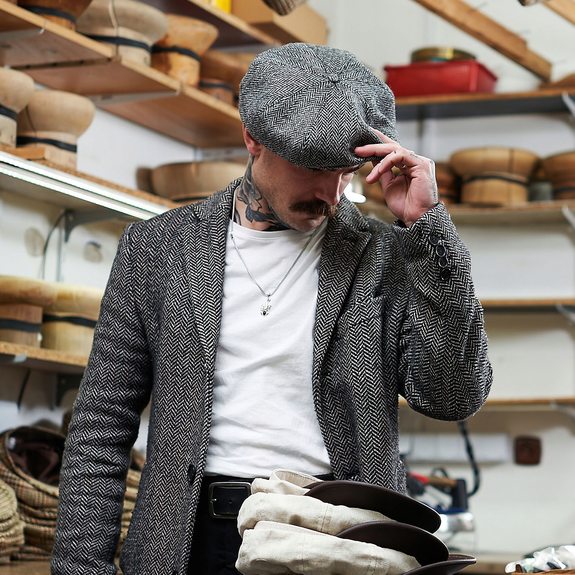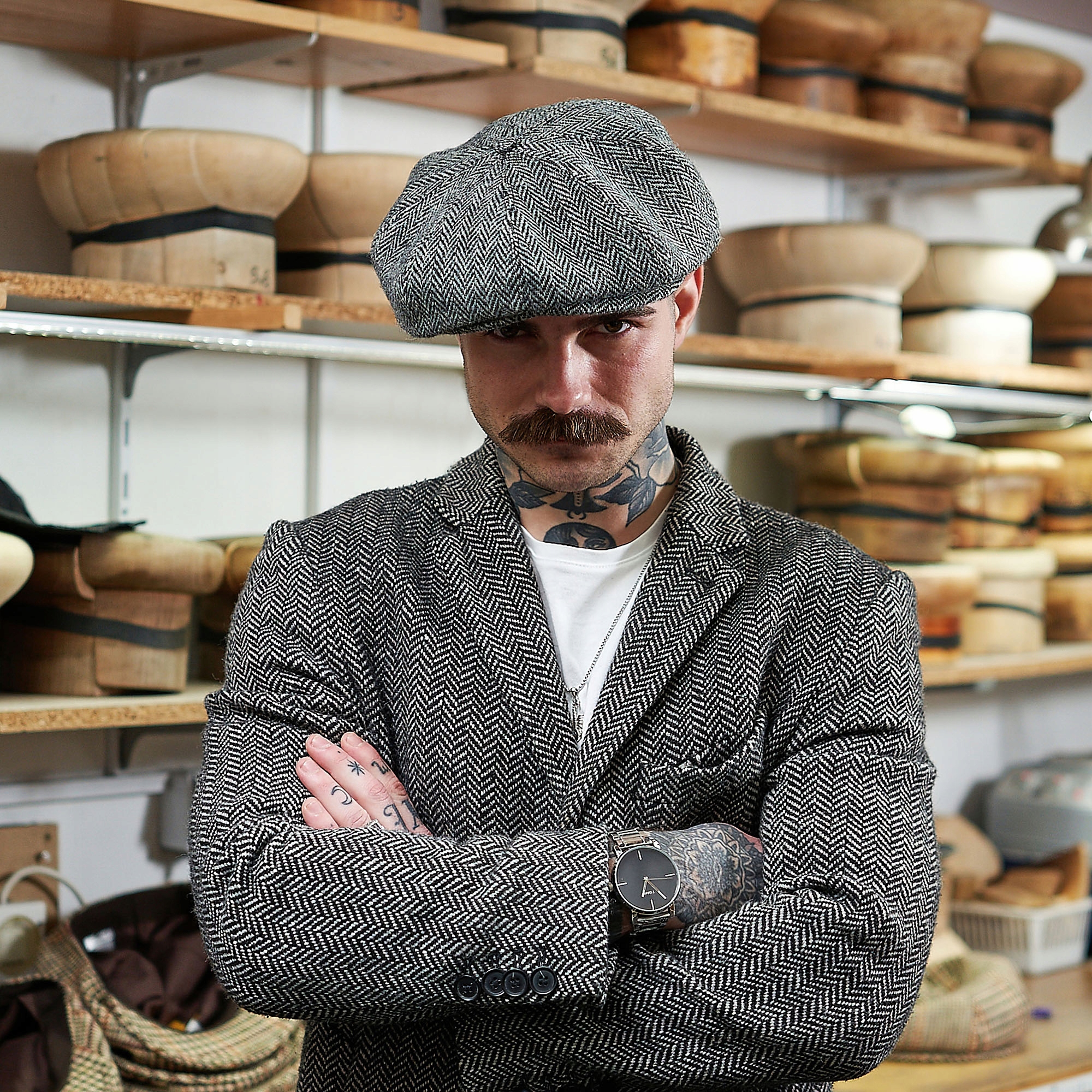 Стиль плоской кепки отсылает к головным уборам, которые носила британская банда Острые козырьки в конце XIX века в Бирмингеме. История этой группы окутана множеством мифов, и один из самых интересных – то, что гангстеры прятали лезвия бритвы между полями и головкой кепок, используя их в уличных драках.