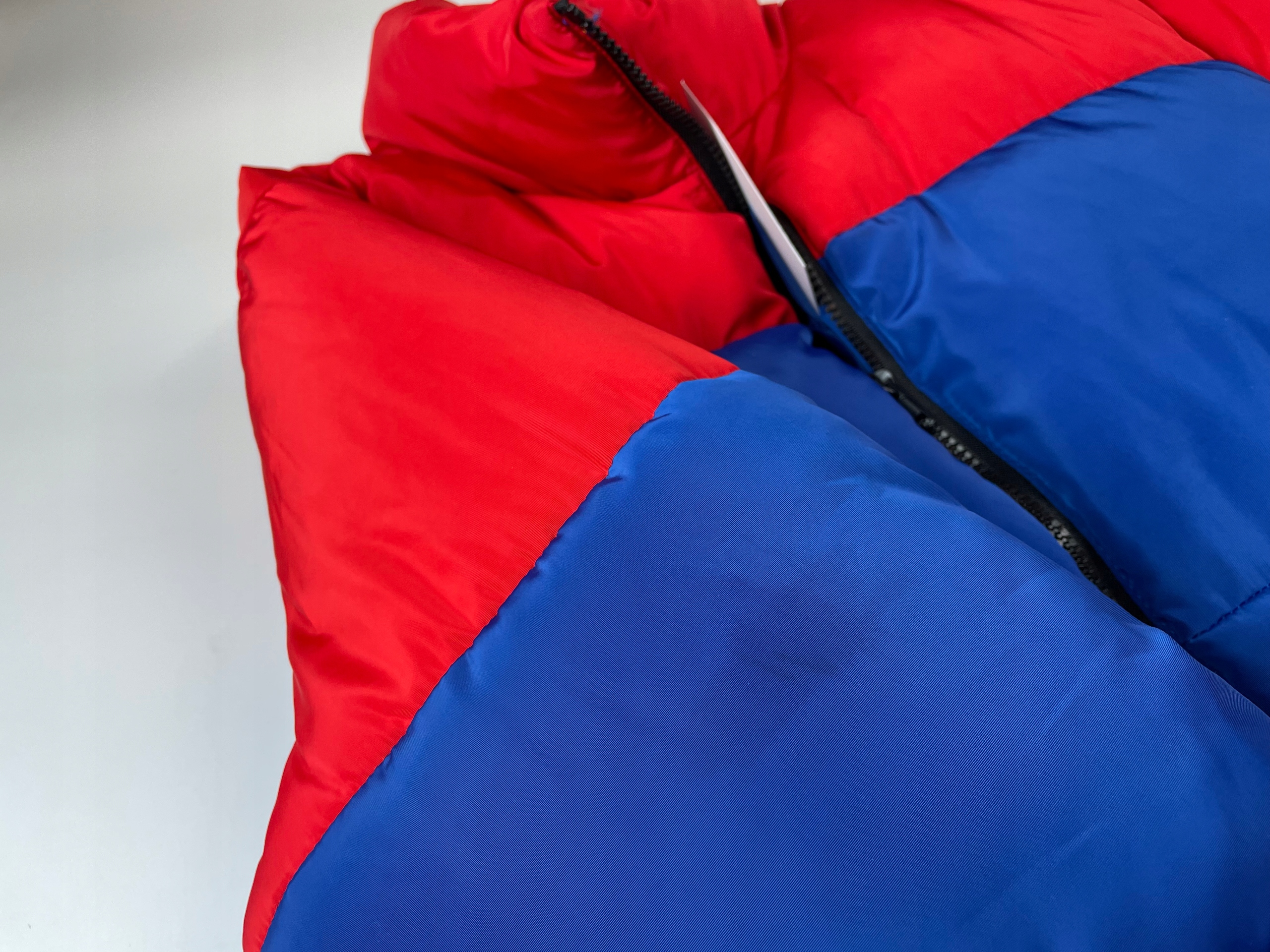 - Мужская стеганая зимняя куртка. Он красного и синего цвета, застегивается на черную молнию. Имеет два кармана по бокам, также застегиваются на декоративную молнию черного цвета. У куртки нет капюшона, но есть высокий воротник-стойка. Низ куртки и рукава отделаны резинкой. Куртка очень хорошо сделана с вниманием к деталям. Он очень теплый, наполнитель синтепон.