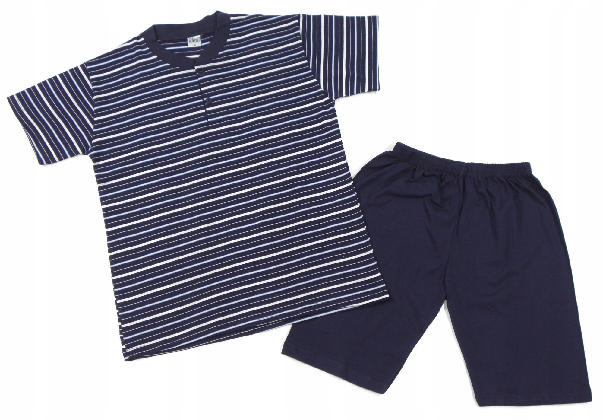 Футболка с короткими рукавами, застегивающаяся на пуговицы, имеет вырез горловины, отделанный кантом из того же материала и цвета, что и брюки. Короткие брюки длиной до колена имеют удобный крой и удобный пояс на резинке.