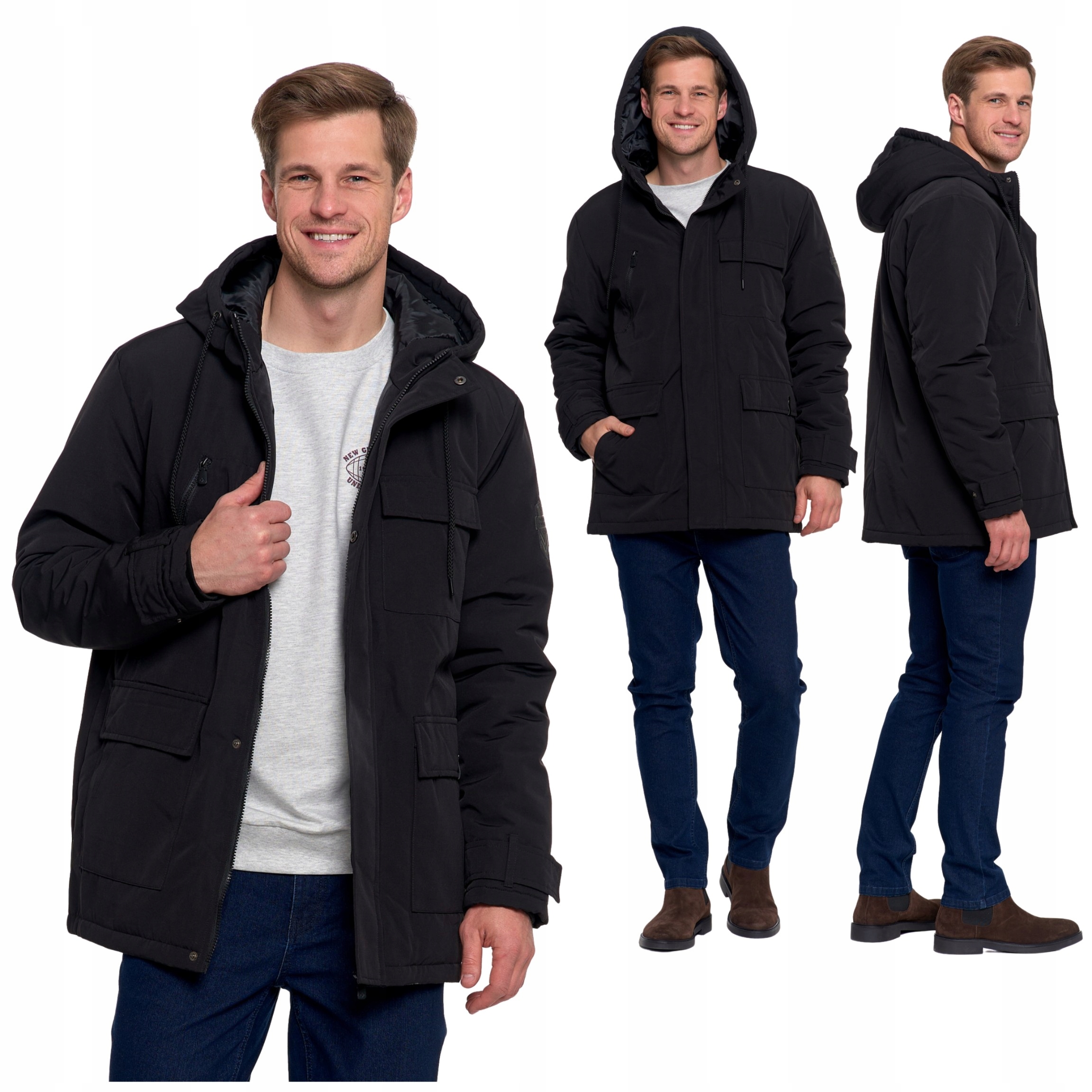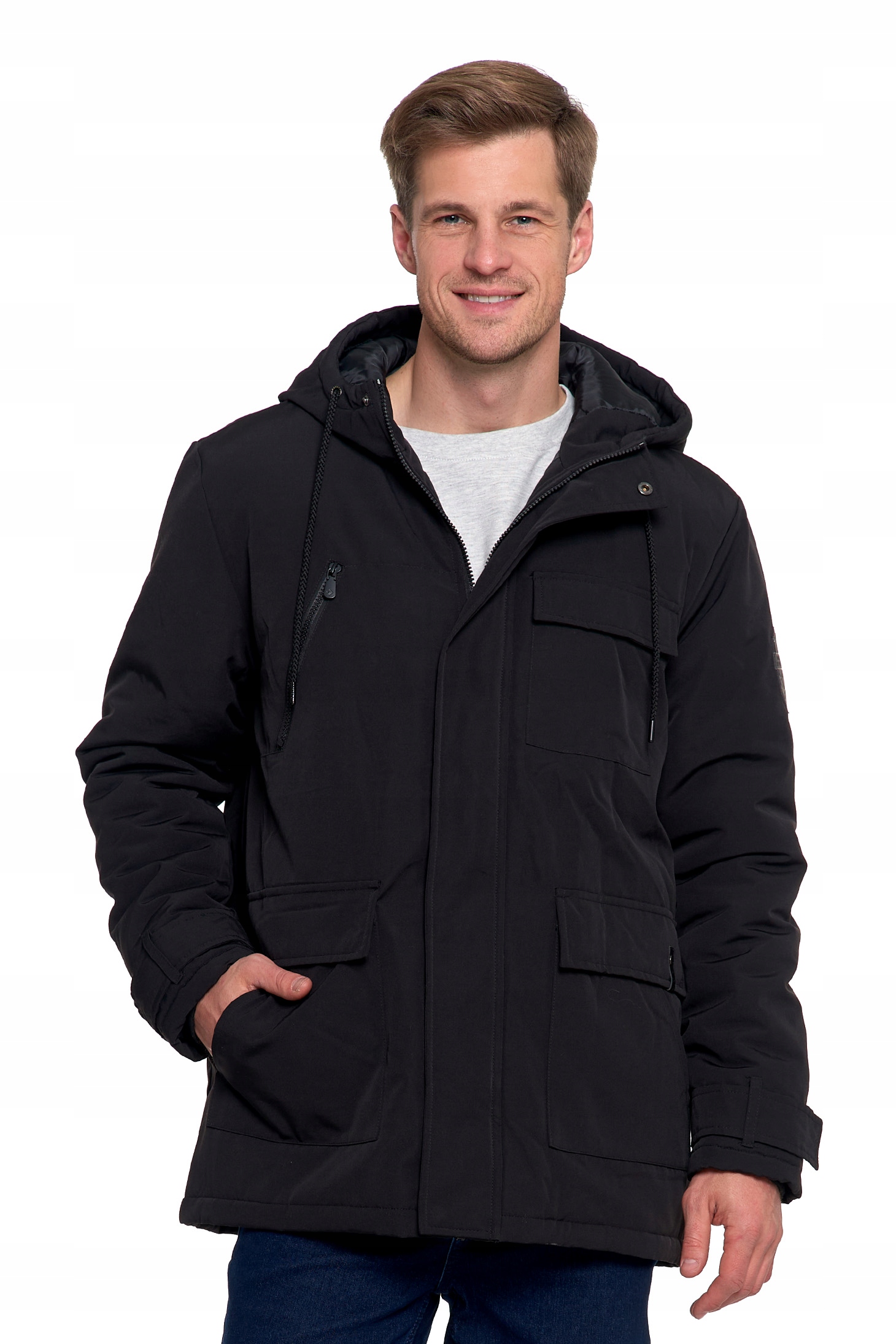 КУРТКА ЗИМНЯЯ МУЖСКАЯ С КАРМАНАМИ И КАПЮШОНОМ МОДНАЯ КОМФОРТНАЯ MORAJ L