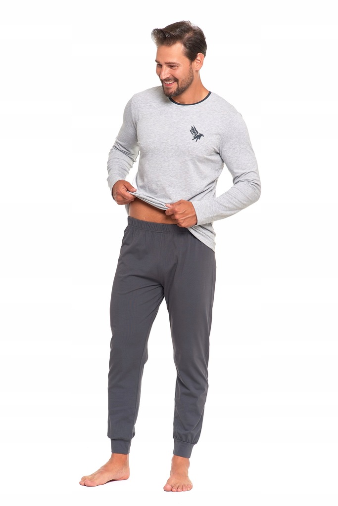 ОБЫЧНАЯ МУЖСКАЯ ХЛОПКОВАЯ ПИЖАМА MORAJ С ДЛИННЫМ РУКАВОМ БАЗОВЫЙ КОМФОРТНЫЙ ГРАФИТ L