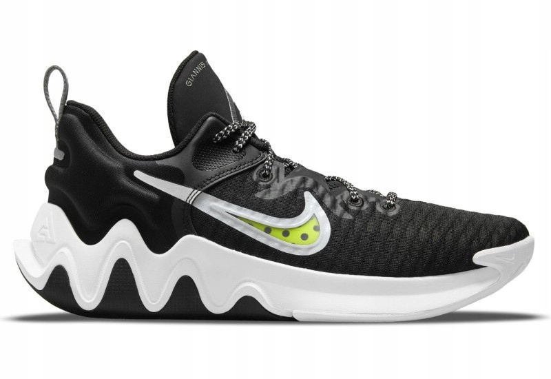 подошва округлена от пятки до пальцев, благодаря которой она обеспечивает плавность движения. Вырезы пены позволяют уменьшить вес и обеспечить оптимальную динамику (благодаря вырезам, пена имеет больше места для сжатия и расширения). Он достигает внутренней части обуви вокруг пальцев. Благодаря этому резина может сгибаться и сохранить адгезию при предпринятом положении евро. , который легкий и воздушный. Внутренний ремень окружает плюсневую среду и помогает поддерживать стабильность во время движения бокового движения. Это работает как безопасная и удобная жгут, которая удерживает каблук и позволяет сохранить свежесть во время матча. Форма подошвы под пяткой была разработана для оптимальной амортизации во время каждого контакта пятки с танцполом. Названия братьев Джаннис оформлены на пенной подошве. Имена его родителей и сына Лиама были помещены на внешнюю подошву.