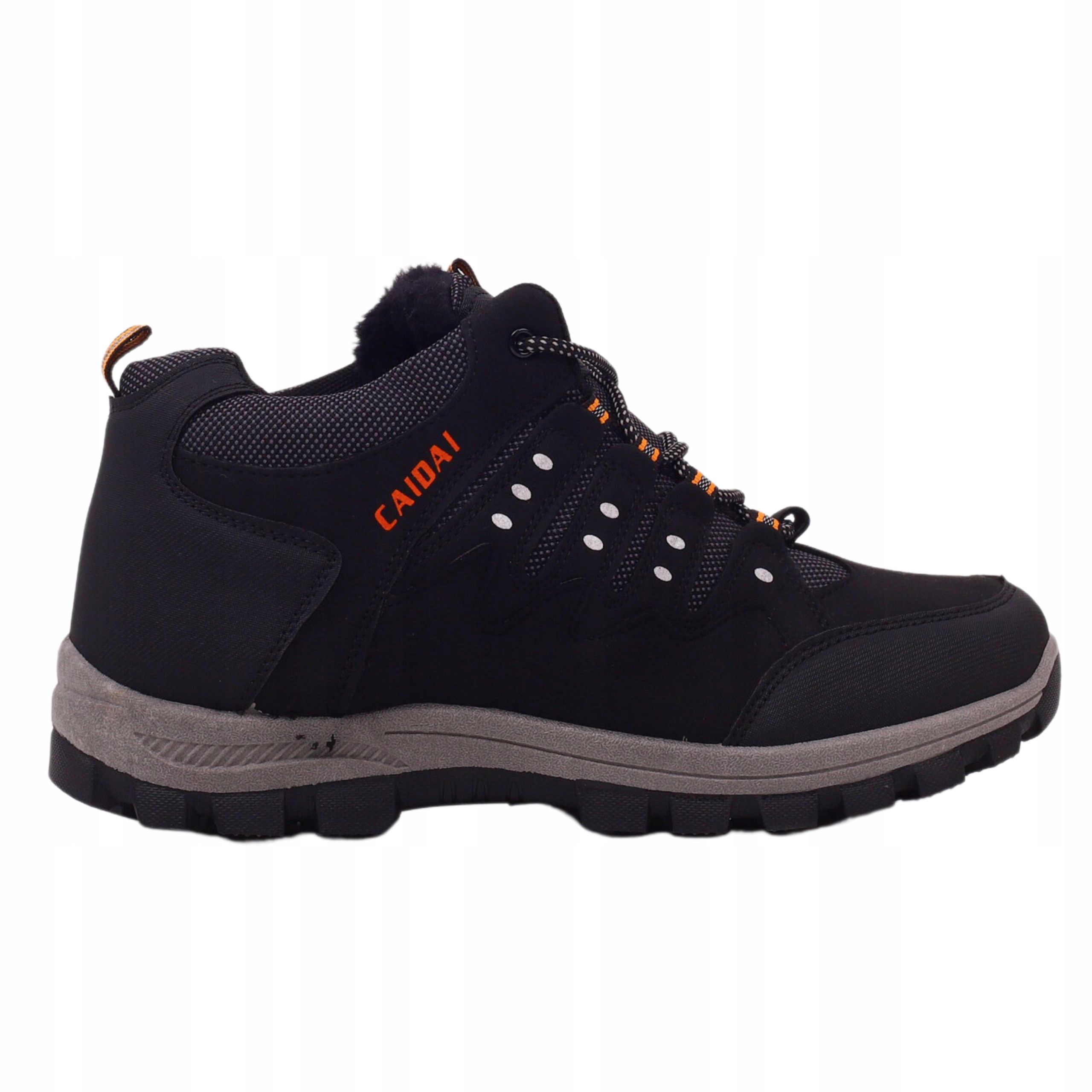 Мужская утепленная зимняя обувь, черная, изготовлена из качественных материалов. Шнуровка регулирует ширину обуви. Высокий верх обеспечивает устойчивость. Подошва проклеенная, что обеспечивает долгий срок службы. Он полностью утеплен мягким мехом, идеально подходящим для холодных дней. Противоскользящая подошва с протектором улучшает амортизацию стопы.