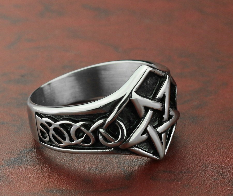 ЧОЛОВІЧЕ КІЛЬЦЕ З ПЕЧАТКОЮ ПЕНТАГРАМА, НЕРЖАВІЮЧА СТАЛЬ 316L, РОЗМІР 25