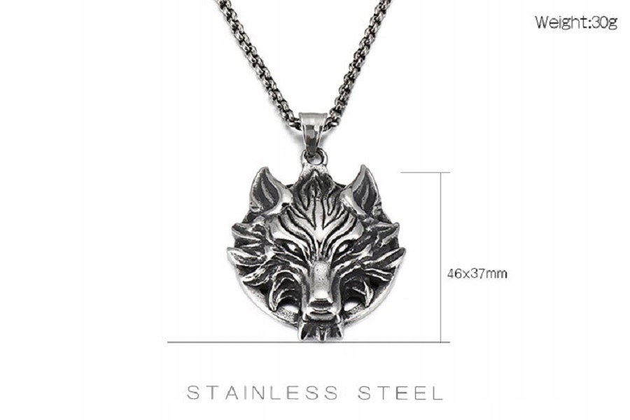 ЧОЛОВІЧЕ НАМИСТО-АМУЛЕТ ВОВКА, НЕРЖАВІЮЧА СТАЛЬ 316L