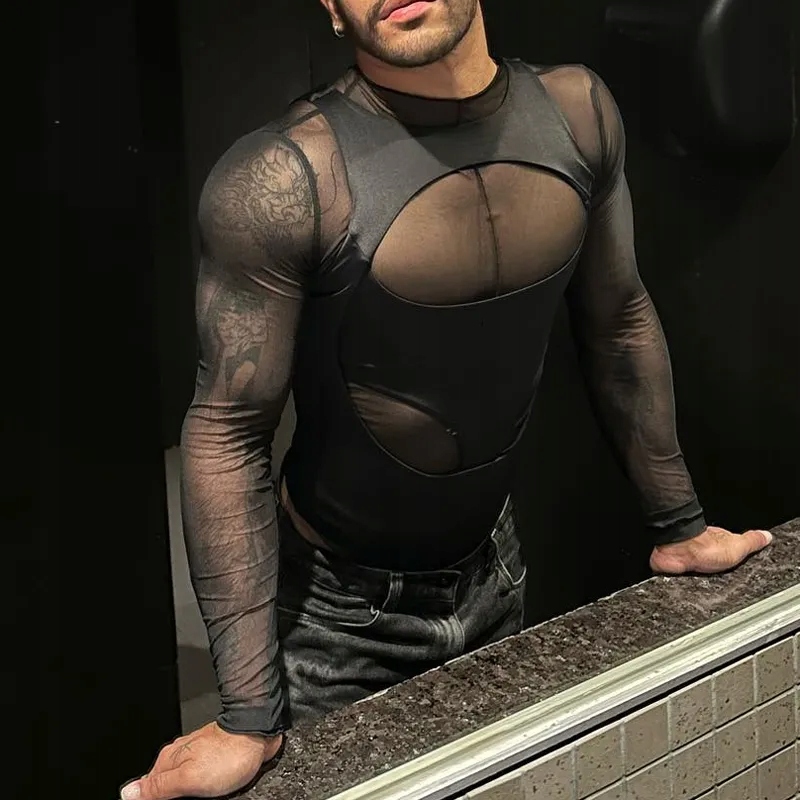Чоловіче сітчасте боді з круглим вирізом Еротична білизна чоловіча XXL