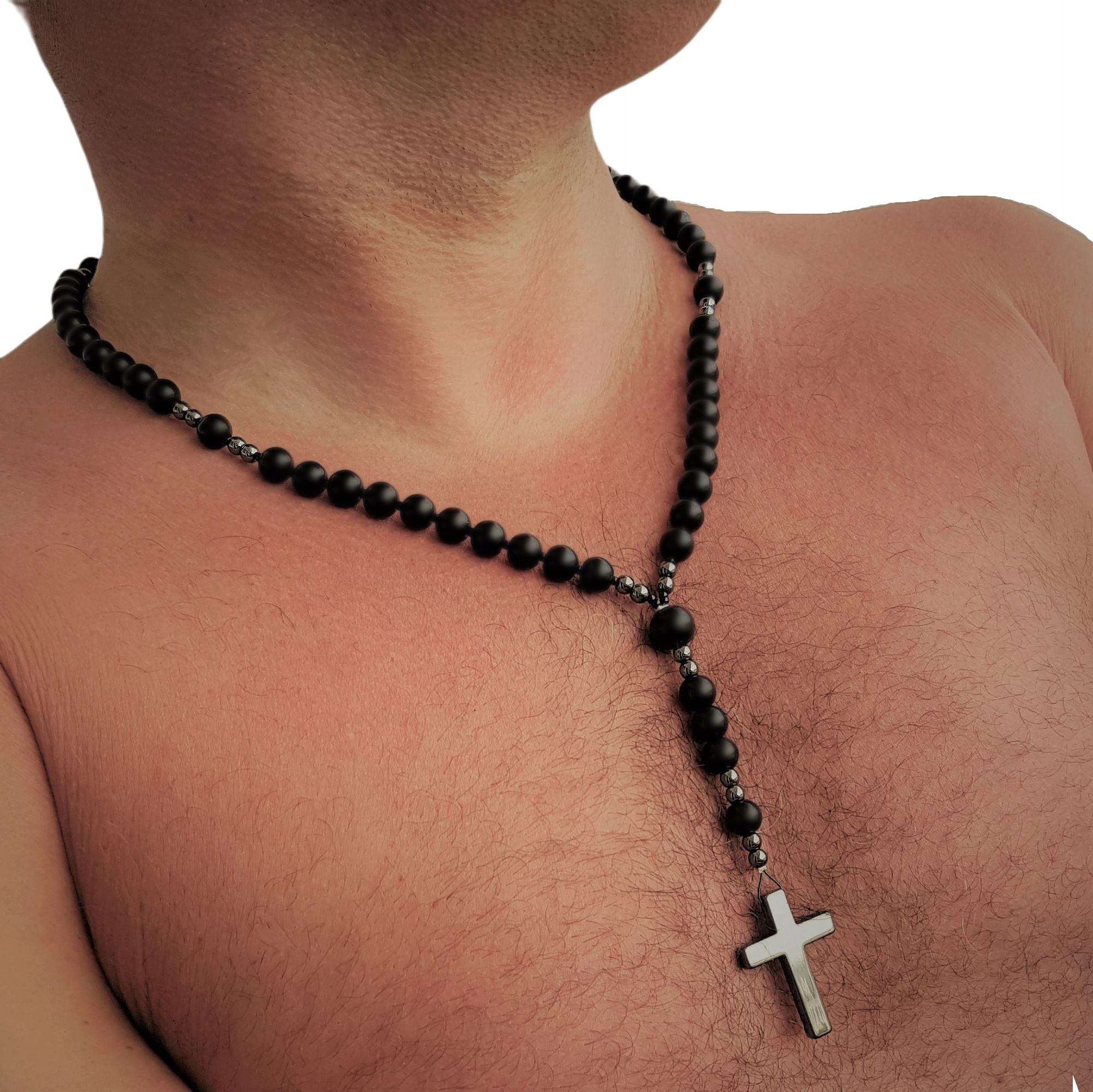 ЧОЛОВІЧЕ СТИЛЬНЕ НАМИСТО ЧОВЦІ МАТОВИЙ ОНІКС ГЕМАТИТОВИЙ ХРЕСТ