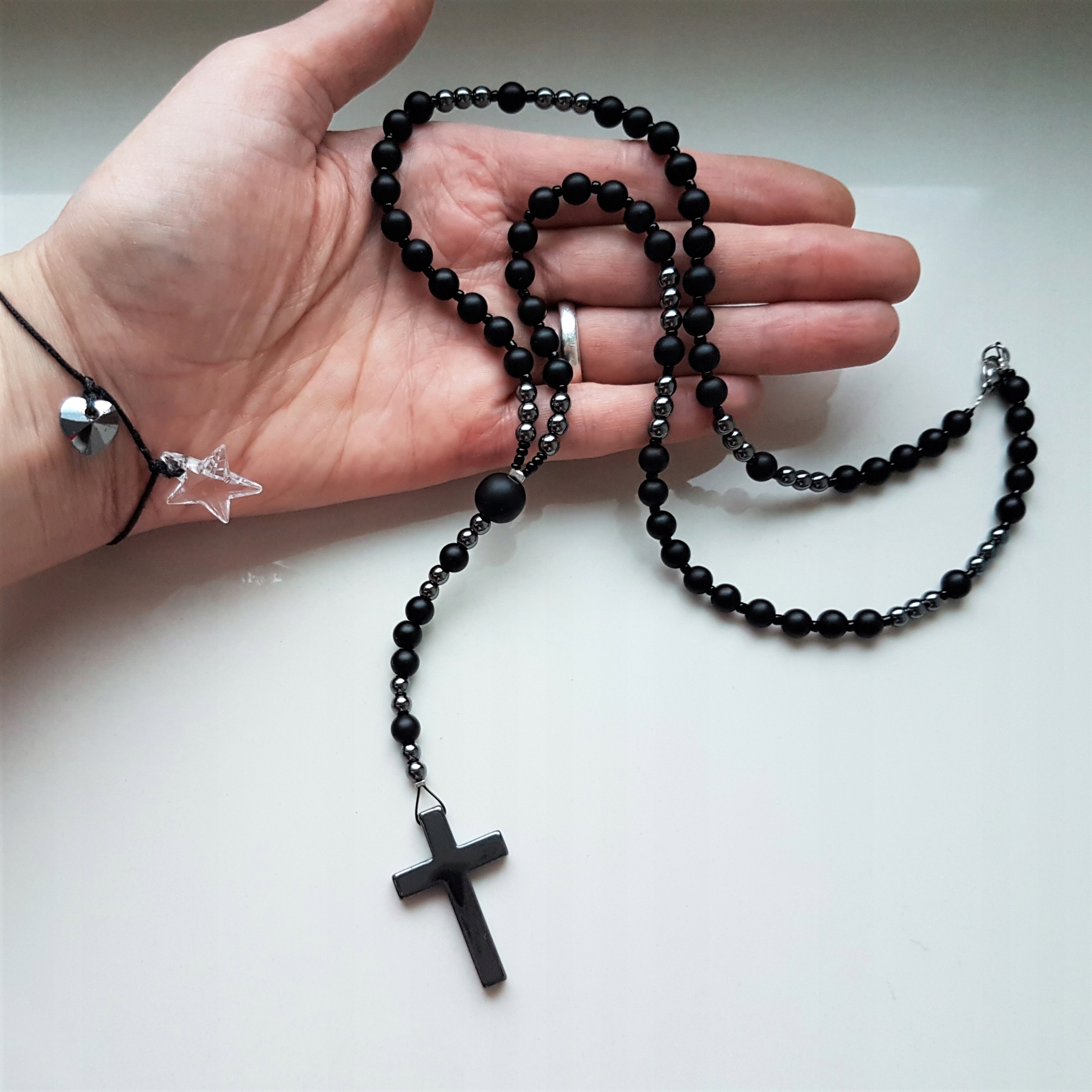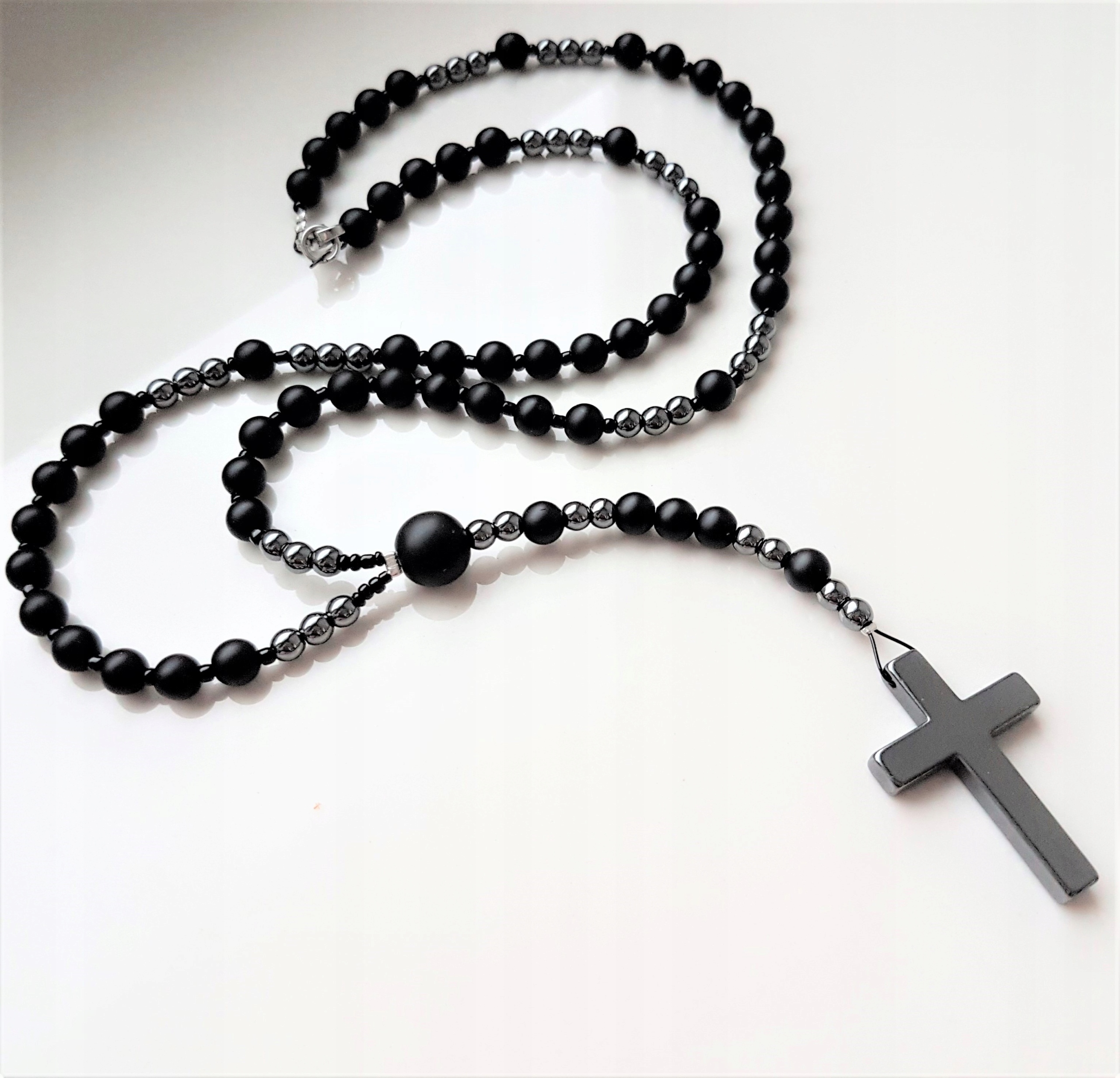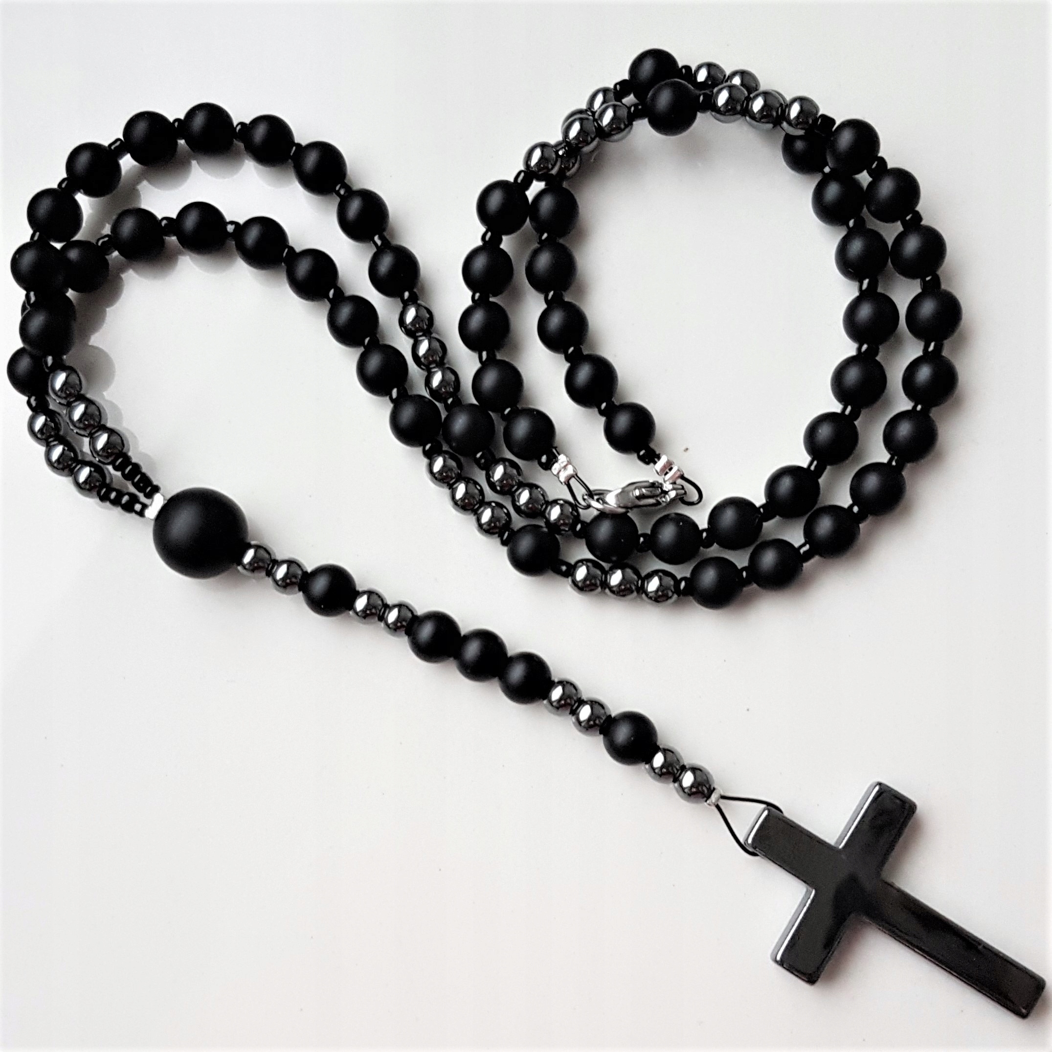ЧОЛОВІЧЕ СТИЛЬНЕ НАМИСТО ЧОВЦІ Модний дизайн онікс гематит хрест 65 см