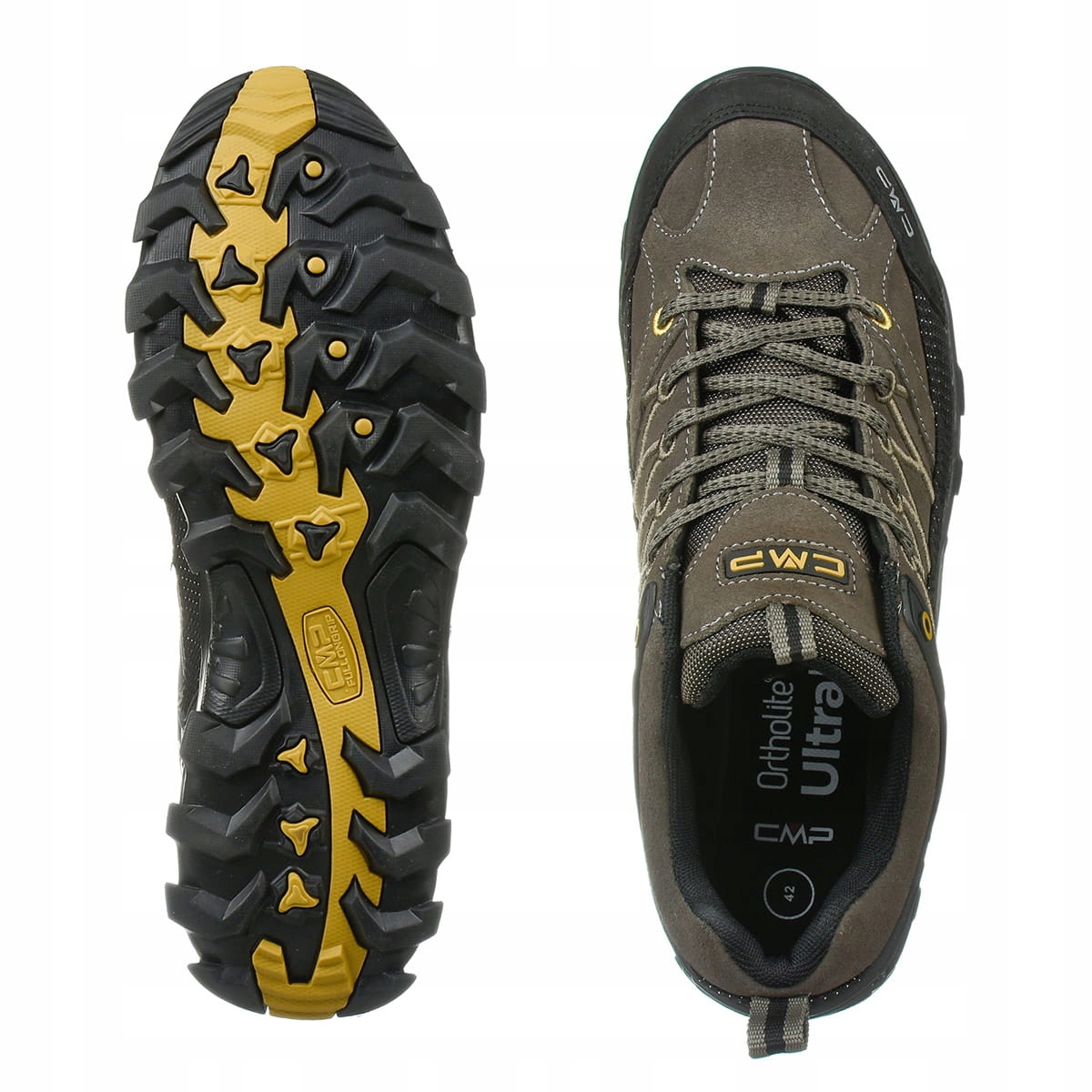 Подошва - на основе технологии CMP FULL On GRIP обеспечит пользователю безопасность и уверенный шаг практически в любых погодных условиях. Благодаря рисунку протектора «елочка» он хорошо работает как на сухой, так и на мокрой поверхности, сохраняя при этом низкий уровень истирания.