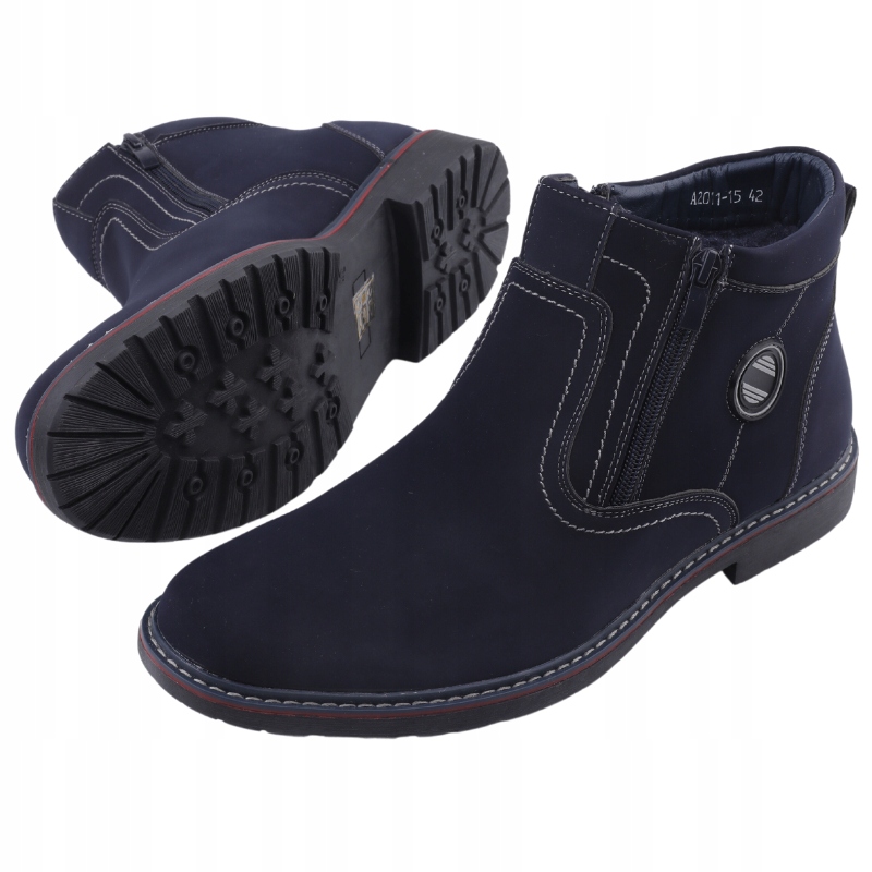 Ботильоны мужские на плоской подошве. Модель без застежки, оснащенная двумя слайдерами. Круглый нос. Более высокий верх, закрывающий лодыжку. Изготовлен из эко-замши. Верх и задняя часть верха украшены замшевой союзкой. Изолированный. Идеально подходит для работы и повседневного использования.