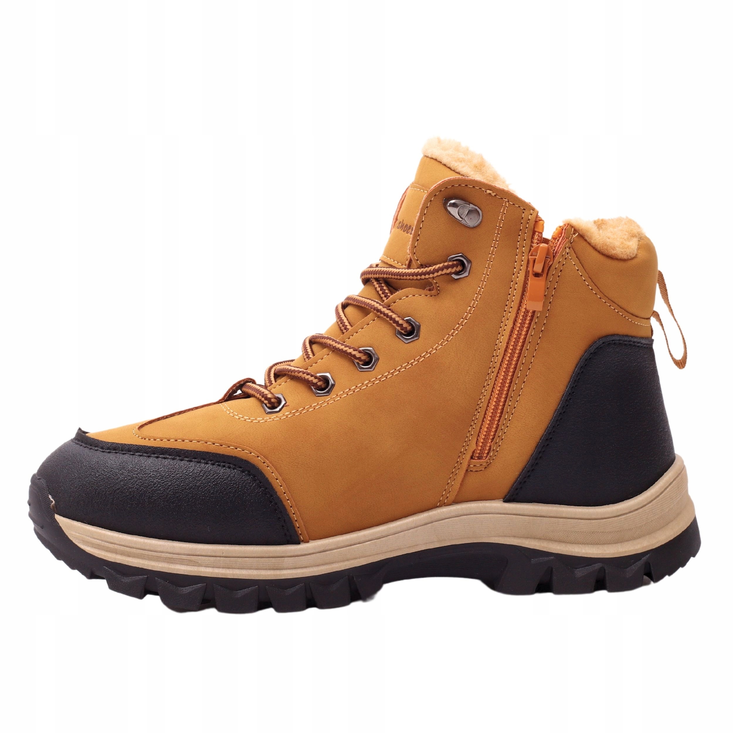 Мужская утепленная зимняя обувь, светло-коричневого цвета, изготовлена из высококачественных материалов. Шнуровка регулирует ширину обуви. Высокий верх обеспечивает устойчивость. Подошва проклеенная, что обеспечивает долгий срок службы. Он полностью утеплен мягким мехом, идеально подходящим для холодных дней. Противоскользящая подошва с протектором улучшает амортизацию стопы.