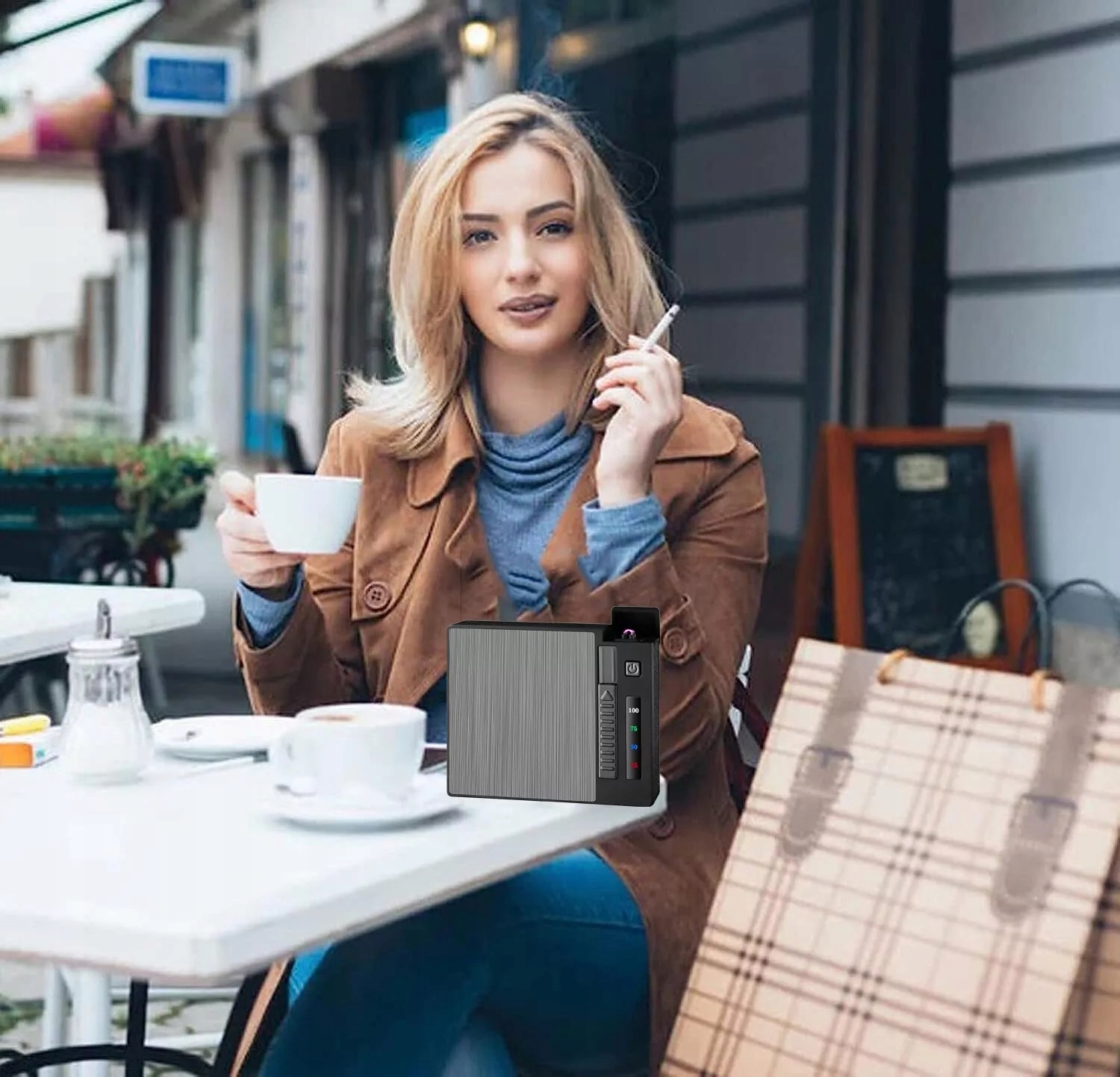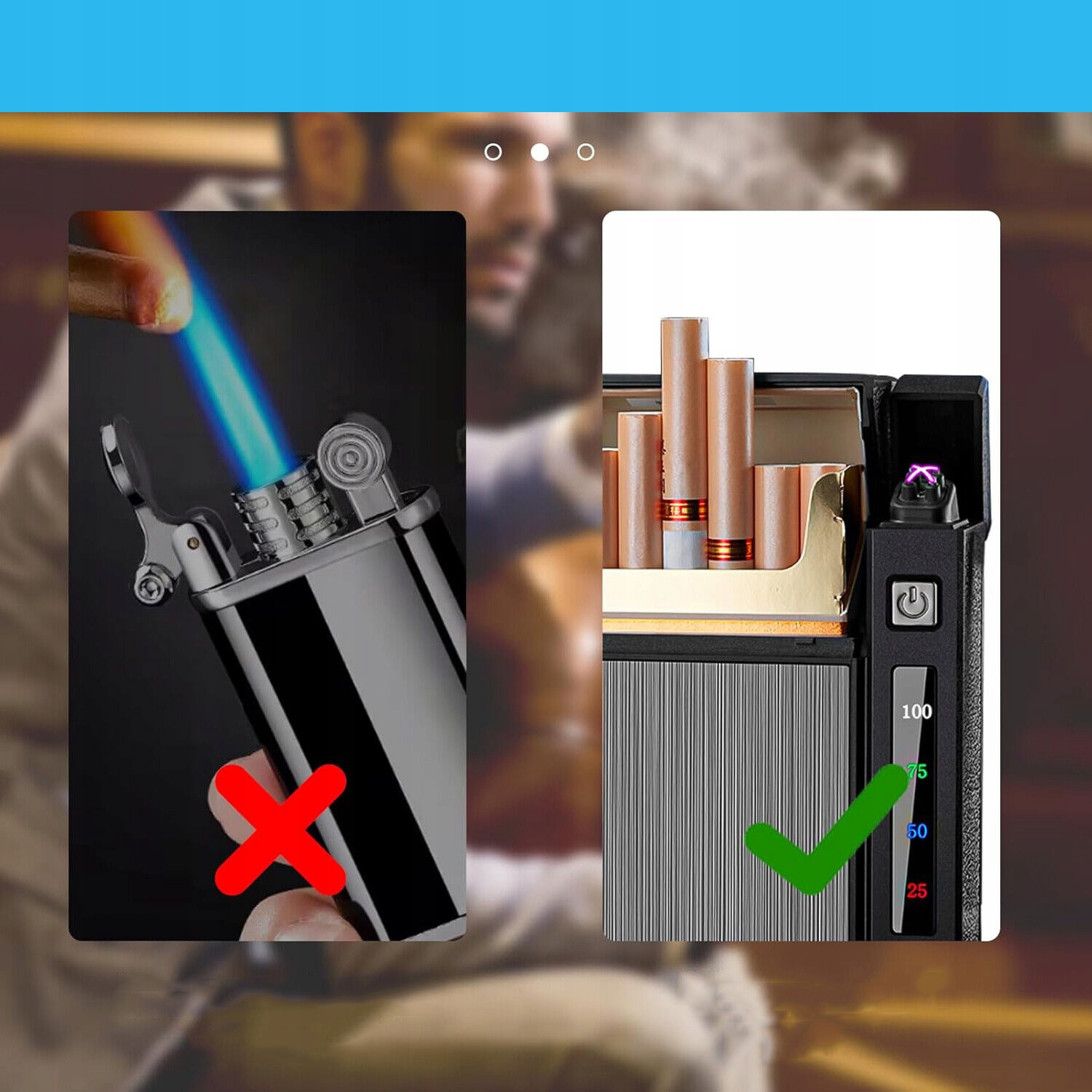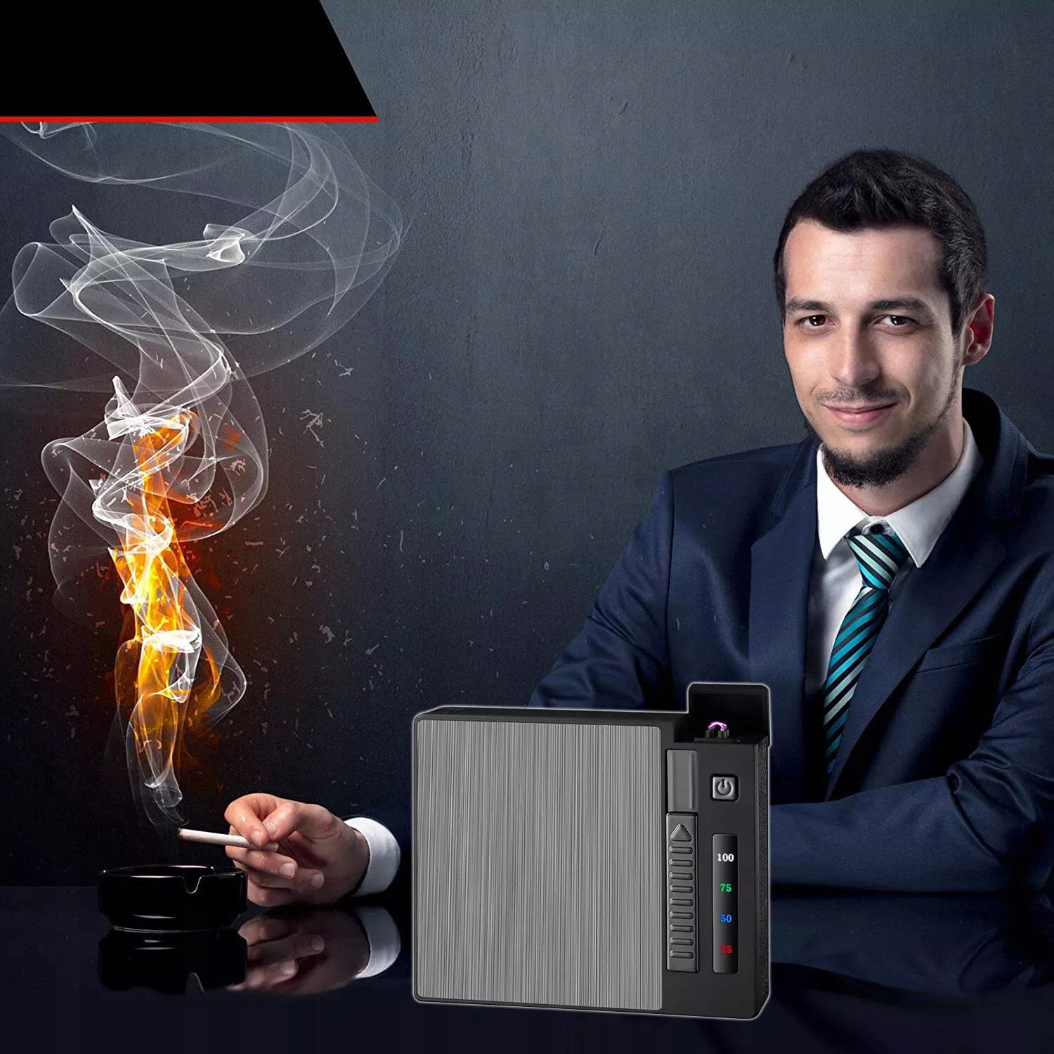 Мужчина 2 на 1 мужчина с электронными зажигалками, сигаретной коробкой
