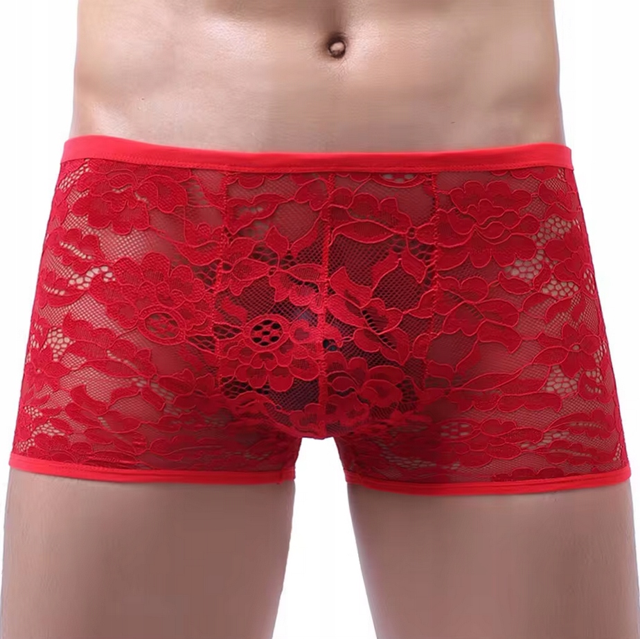 КРАСНЫЕ КРУЖЕВНЫЕ ПРОЗРАЧНЫЕ МУЖСКИЕ БОКСЕРЫ