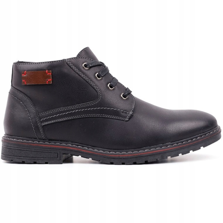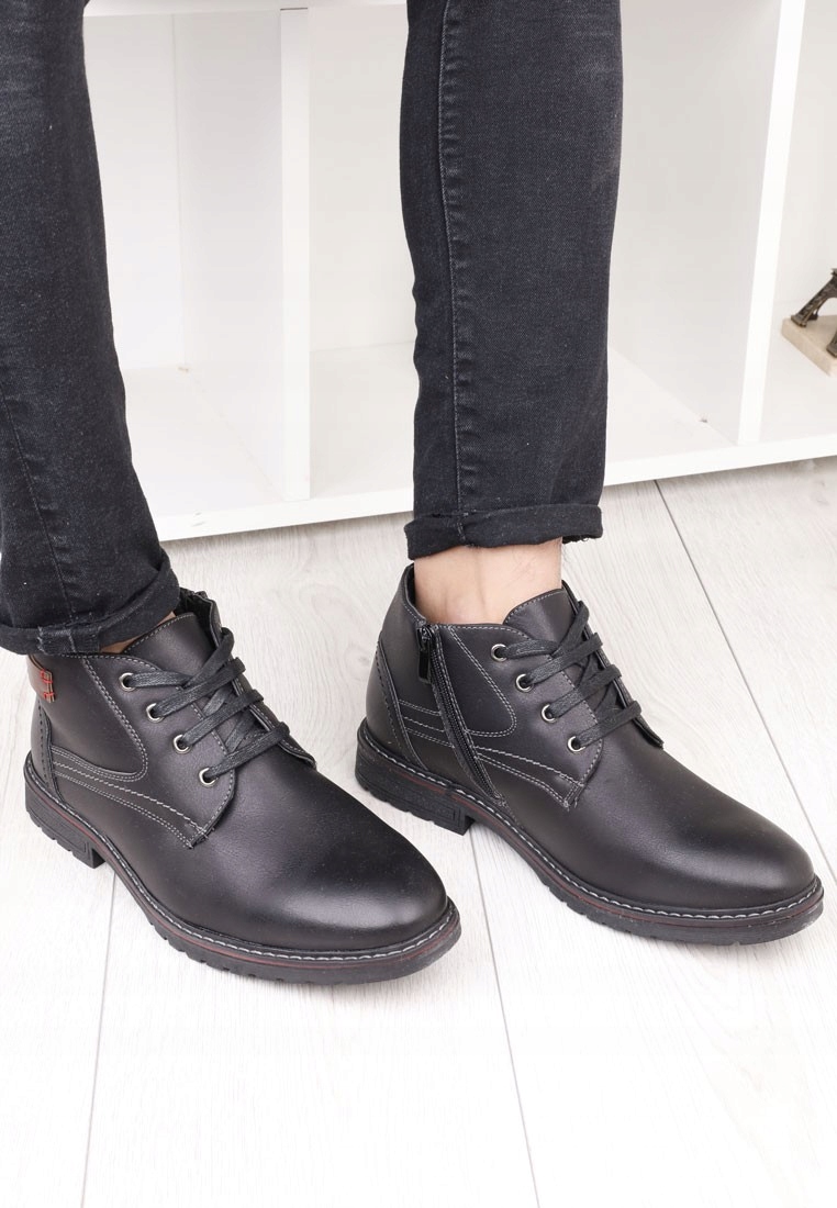 Мужские ботильоны на плоском каблуке. Верх достигает чуть выше щиколотки. Украшен многочисленными стежками. Круглый нос. Застегивается на молнию сбоку, дополнительно завязывается плоскими шнурками. Модель имеет усиленную изоляцию. Они будут идеально смотреться с тканевыми брюками и пальто.