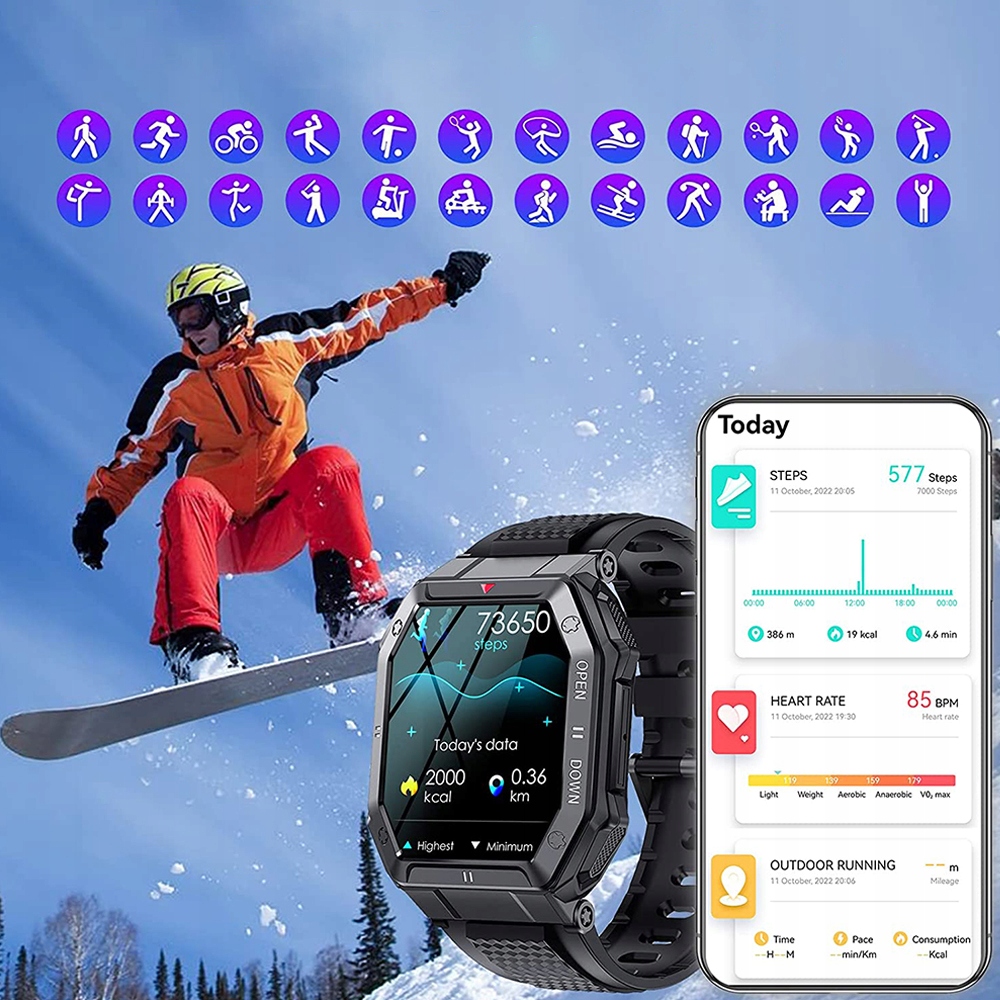 Многофункциональные спортивные часы, поддерживают 24 спортивных режима. Такие как ходьба, бег, езда на велосипеде, бадминтон, баскетбол, футбол, скалолазание, теннис, регби, гольф, бейсбол, эллиптический кросс -тренер, бесплатная тренировка, гребная машина, бег по пересечению кантри, катание на лыжах, боулинг, гантели и приседа. Тщательно сохраните состояние упражнений во время упражнений, следуйте количеству шагов, сжигаемым калориям, пройденным расстоянием и т. Д. Служба 15-дневного времени в режиме ожидания.