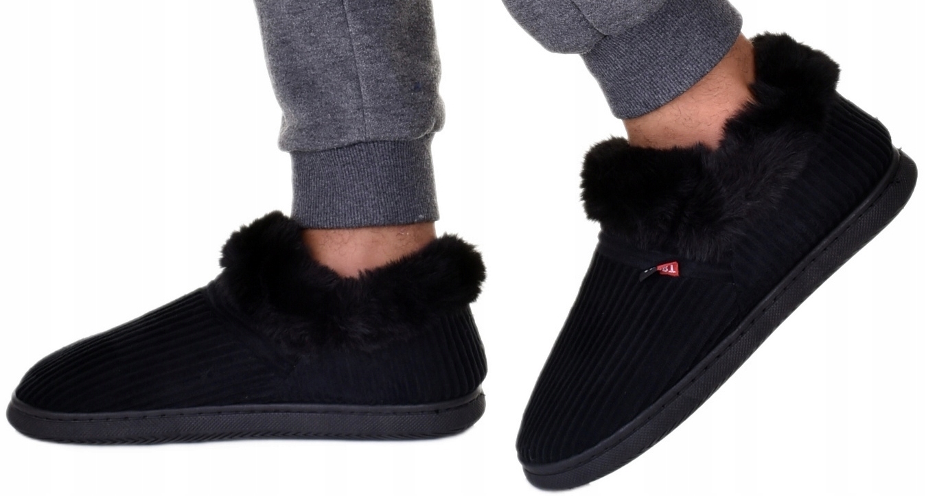 Классические мужские тапочки из высококачественных материалов, внутренняя часть обуви утеплена мягким и теплым мехом.