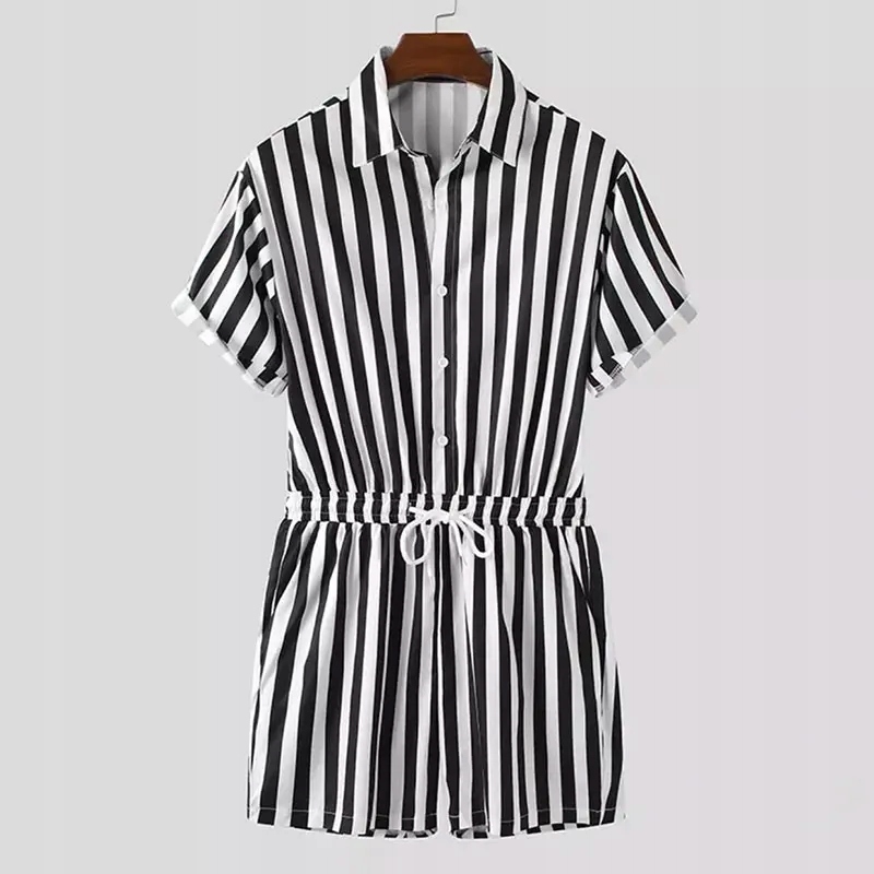Мужские эротические полосатые комбинезоны Short Buttons Size s