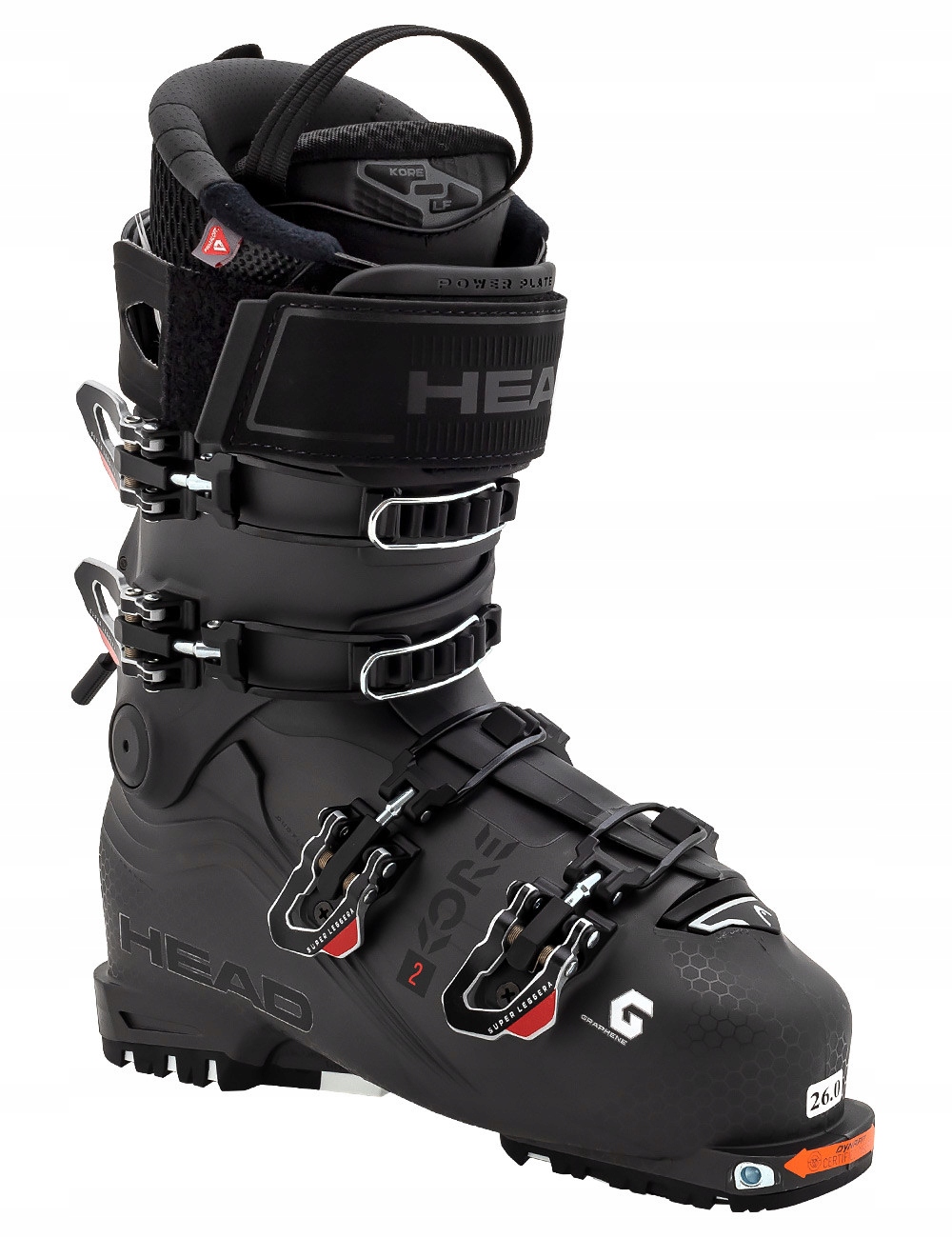 Огромным преимуществом обуви, которое волнует каждого горнолыжника, является, конечно же, минимально возможный вес обуви. Head в коллекции KORE достиг потрясающий результат. При жесткости на изгиб120вес Головки KORE составляет всего1630 гр!