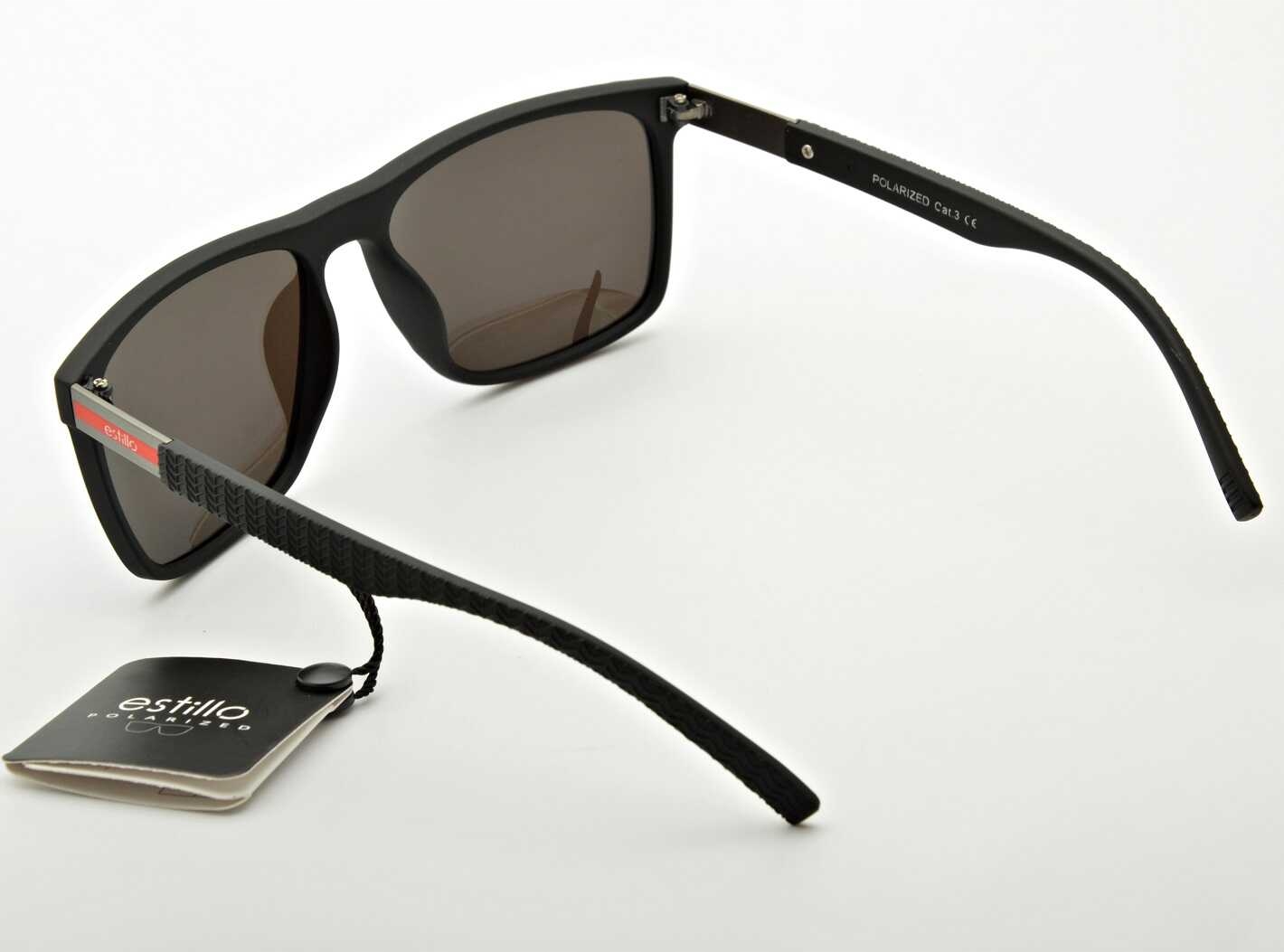 Фирменные мужские солнцезащитные очки чёрного цвета с синими зеркальными линзами и поляризацией от Estillo