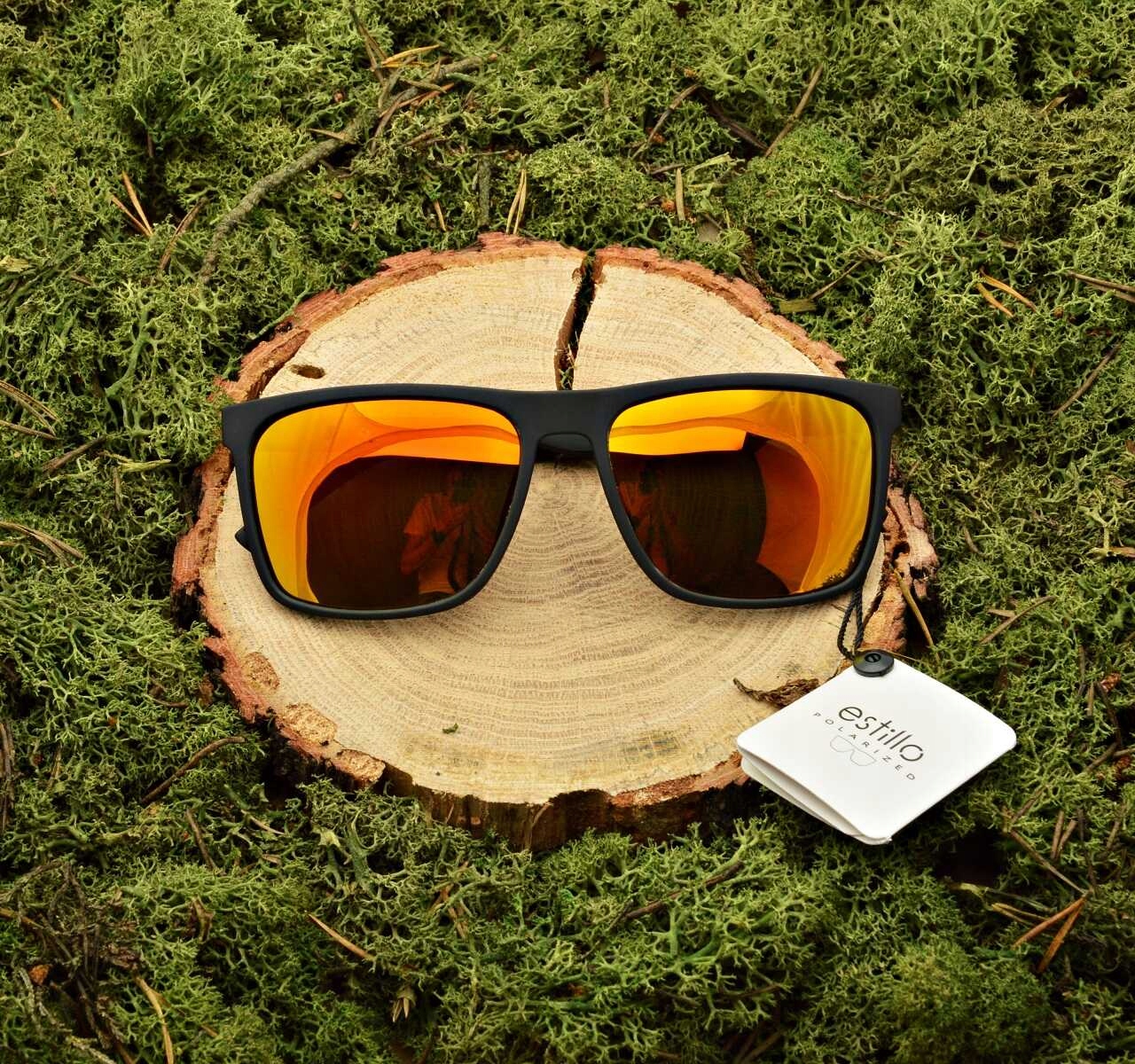 Мужские черные солнцезащитные очки с оранжевым зеркальным фильтром и поляризацией UV400 - бренд Estillo
