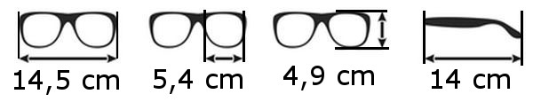 - РАЗМЕРЫ: Ширина 14,5 см; Высота линзы с оправой: 4,9 см; Длина дужек 14 см.