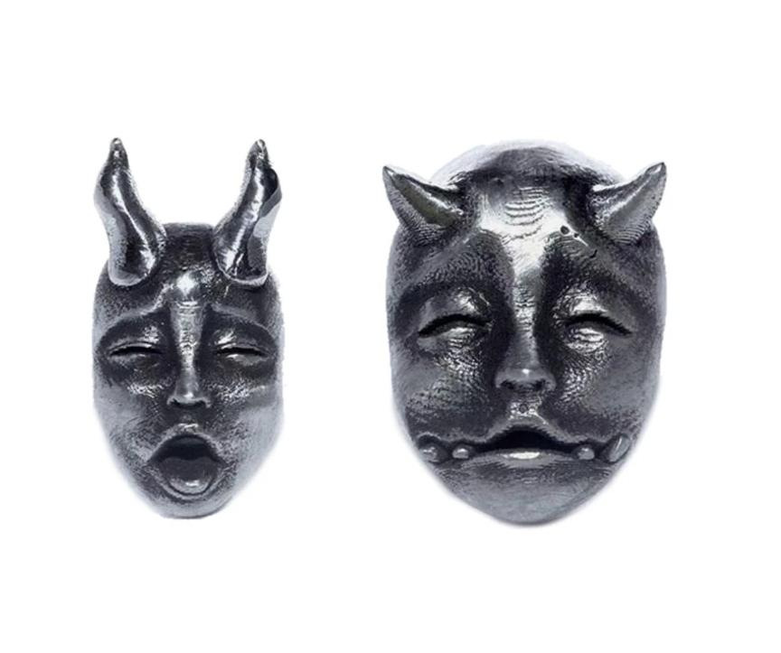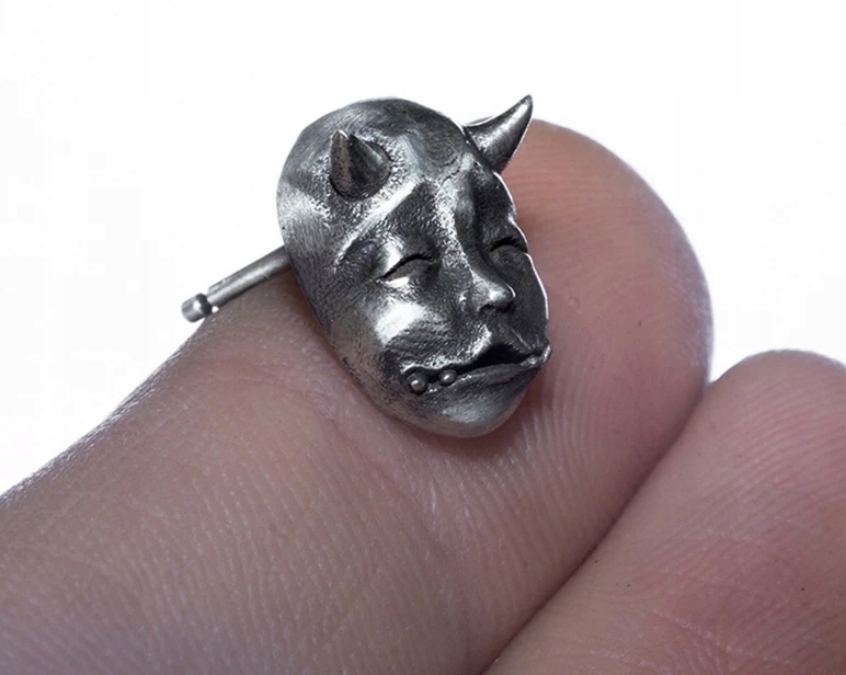 Мужские серьги-гвоздики, пирсинг головы дьявола, гот, демон они, японская маска